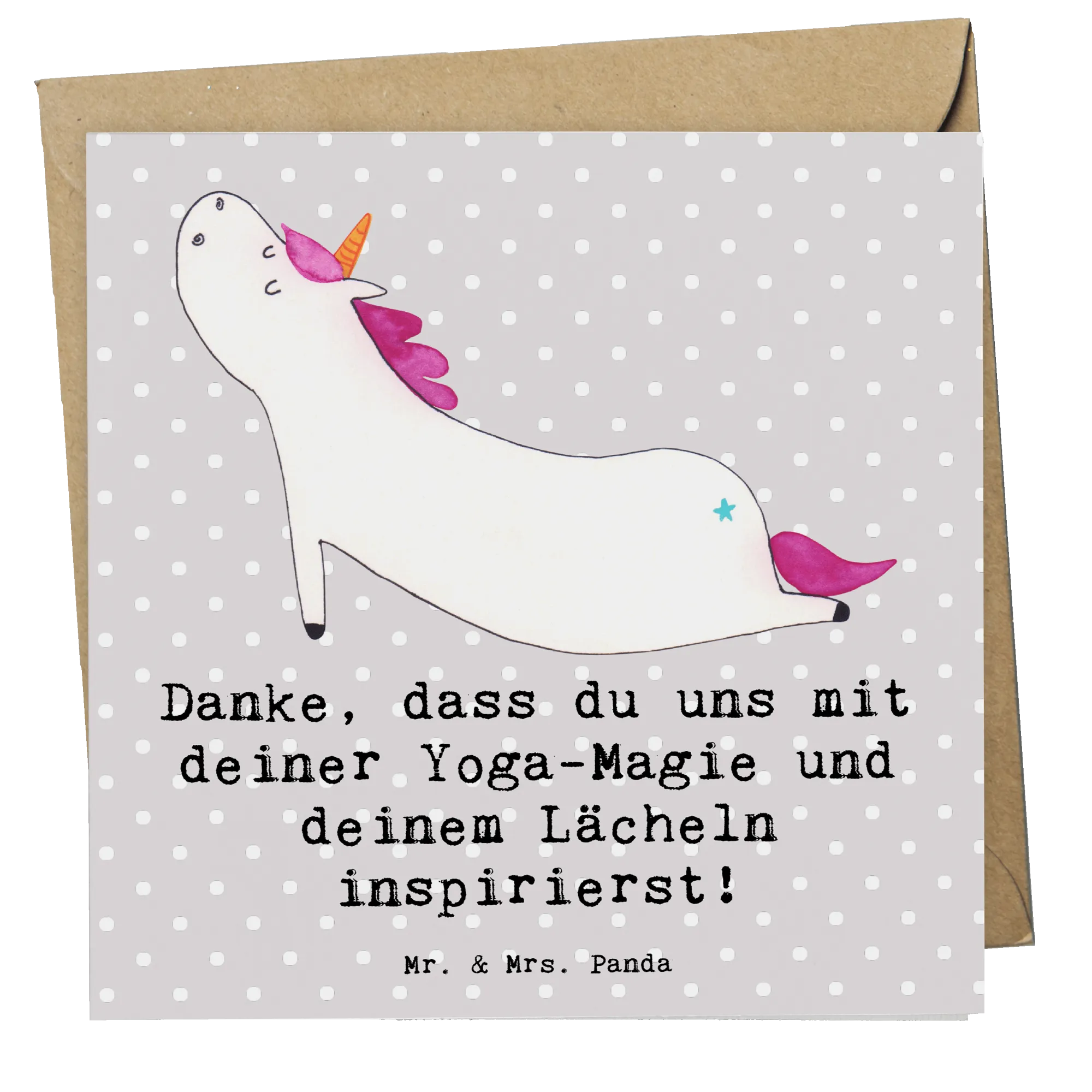 Das bezaubernde Motiv zeigt eine inspirierende Yoga-Szene, ergänzt durch den liebevollen Slogan: "Danke, dass du uns mit deiner Yoga-Magie und deinem Lächeln inspirierst!" Diese Karte ist ideal für verschiedene Anlässe, sei es als Dankeschön, Abschiedsgeschenk oder einfach um deiner Trainerin zu zeigen, wie sehr du ihre Unterstützung schätzt. Sie ist perfekt für Geburtstage, Jubiläen oder als besondere Geste der Anerkennung.