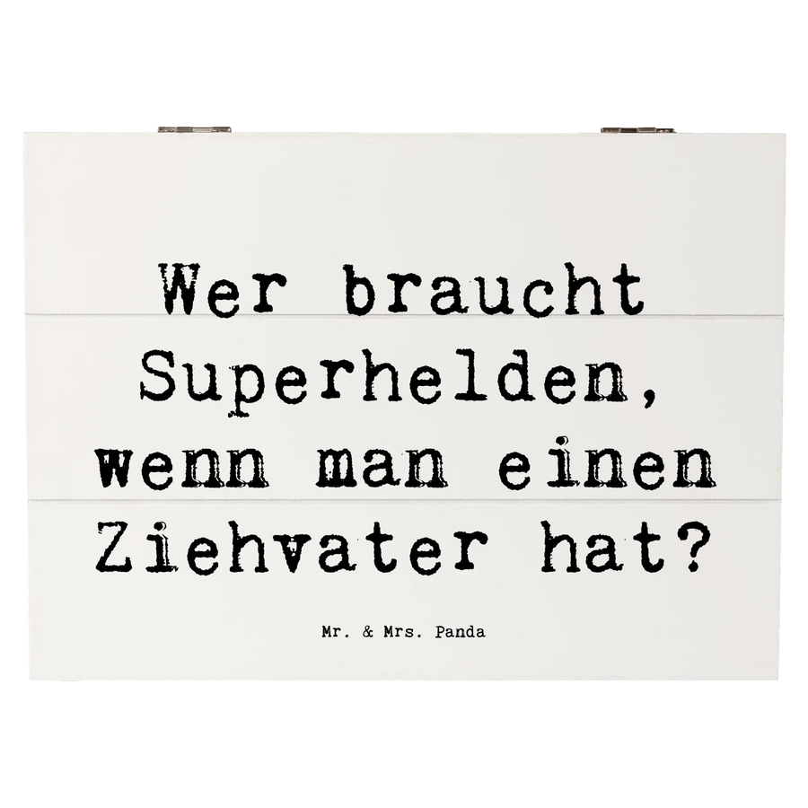 Mit dem liebevollen Spruch "Wer braucht Superhelden, wenn man einen Ziehvater hat?" wird diese Schatzkiste schnell zu einem ganz besonderen Aufbewahrungsort für die schönsten Erinnerungen und Schätze.