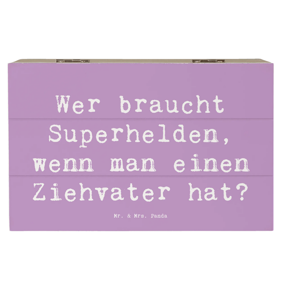Mit dem liebevollen Spruch "Wer braucht Superhelden, wenn man einen Ziehvater hat?" wird diese Schatzkiste schnell zu einem ganz besonderen Aufbewahrungsort für die schönsten Erinnerungen und Schätze.
