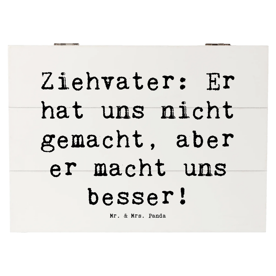 Entdecke die wunderschöne Holzkiste von Mr. & Mrs. Panda mit dem besonderen Motiv "Ziehvater: Er hat uns nicht gemacht, aber er macht uns besser!" Diese Kiste ist nicht nur ein praktischer Aufbewahrungsort für all deine wertvollen Schätze, sondern auch ein tolles Geschenk für alle Ziehväter da draußen, die im Leben vieler eine prägende Rolle spielen.