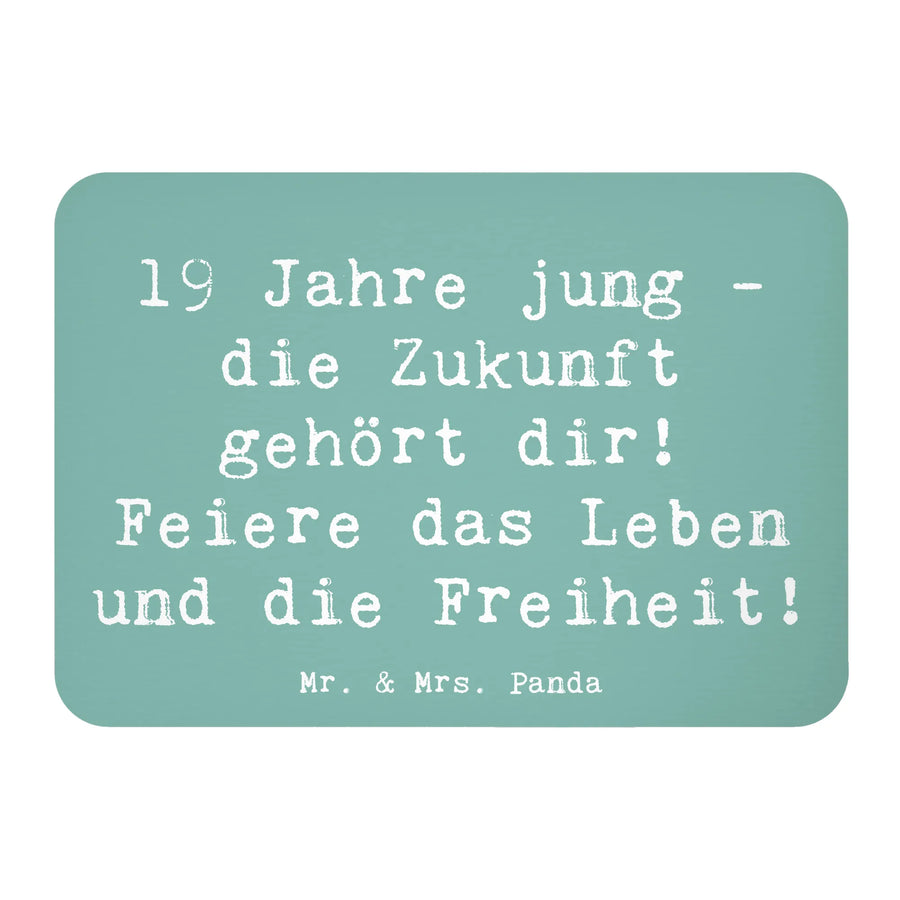 Der perfekte Kühlschrankmagnet von Mr. & Mrs. Panda zum 19. Geburtstag ist nicht nur ein schöner Hingucker, sondern auch eine liebevolle Erinnerung an einen ganz besonderen Tag! Dieser Dekomagnet ist mit dem fröhlichen Spruch "19 Jahre jung - die Zukunft gehört dir! Feiere das Leben und die Freiheit!" bedruckt und bringt Farbe an jeden Kühlschrank oder jede Pinnwand. Mit seinen Maßen von 52 mm x 74 mm passt er wunderbar in jede Küche oder Büro.