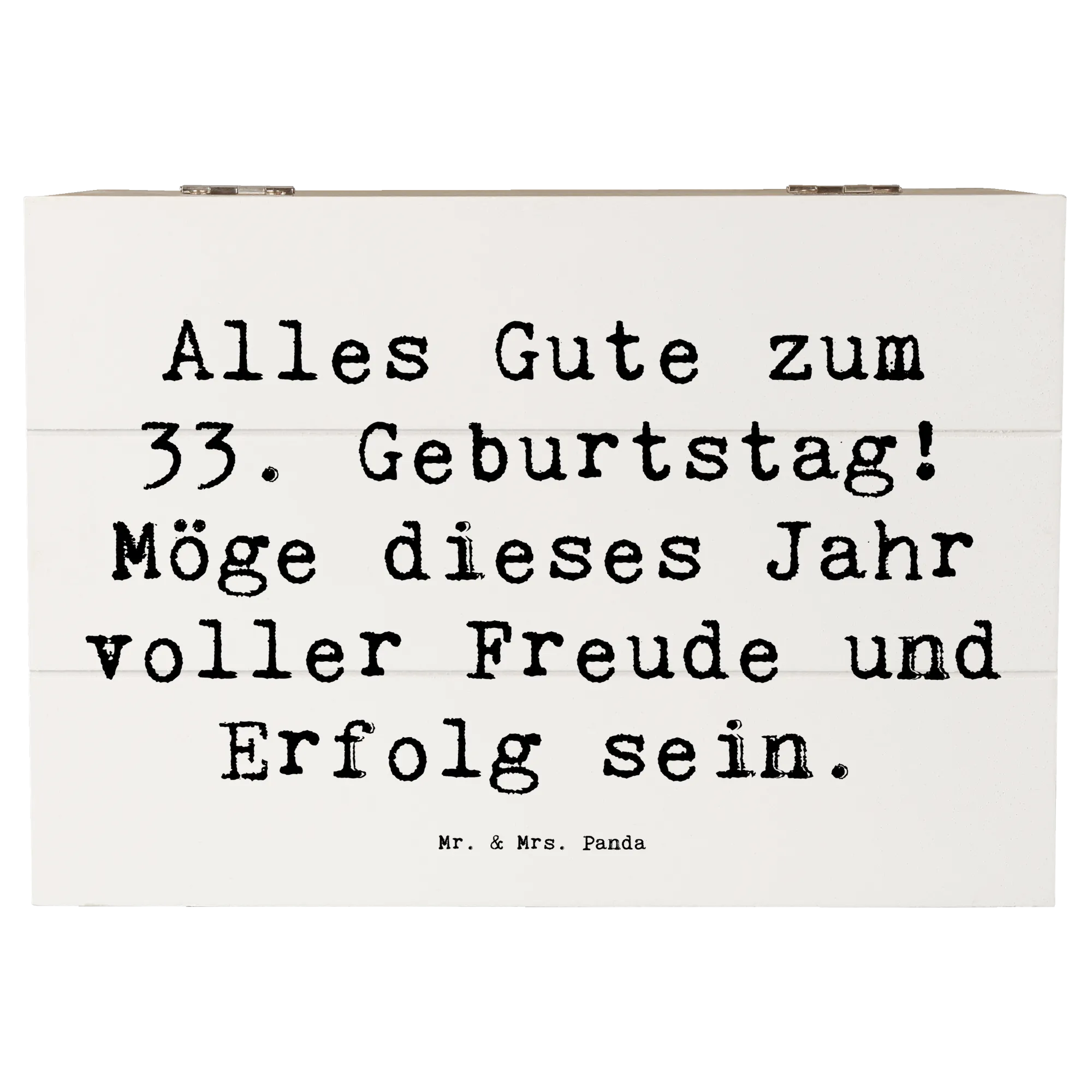 Du suchst das perfekte Geschenk für einen ganz besonderen 33. Geburtstag? Dann ist die wunderschöne Holzkiste von Mr. & Mrs. Panda genau das Richtige! Diese Nachrichtenspielerei verbreitet Freude und macht jeden Geburtstag unvergesslich. Mit dem herzlichen Spruch "Alles Gute zum 33. Geburtstag! Möge dieses Jahr voller Freude und Erfolg sein." genau die richtige Überraschung, um deine besten Wünsche auszudrücken.