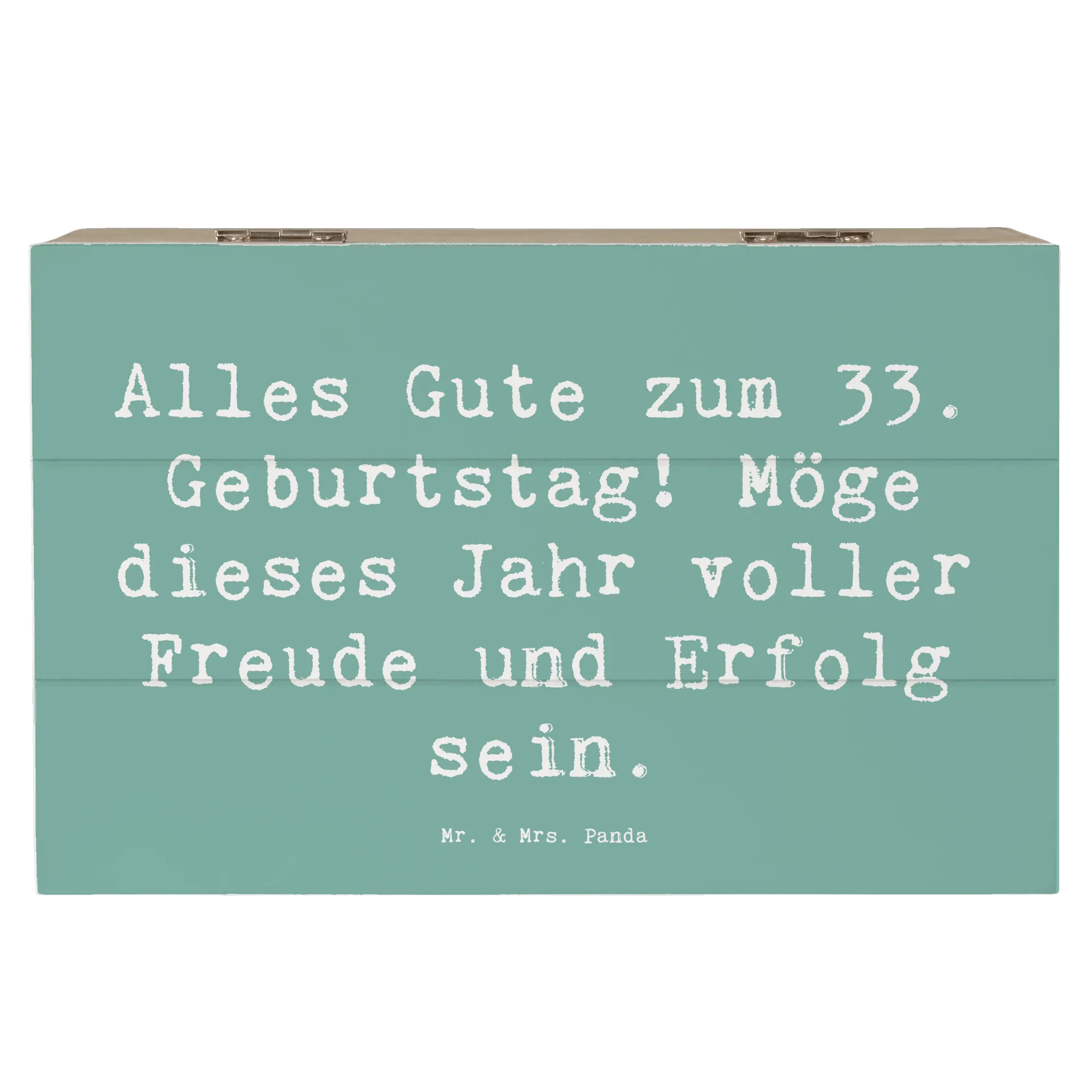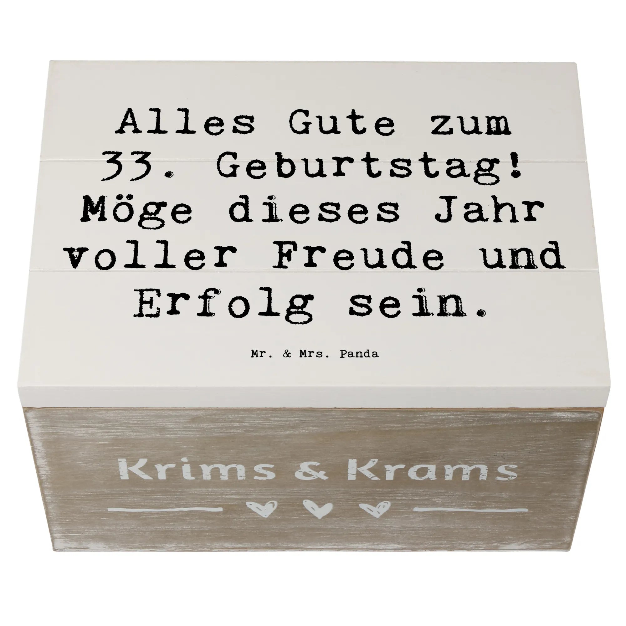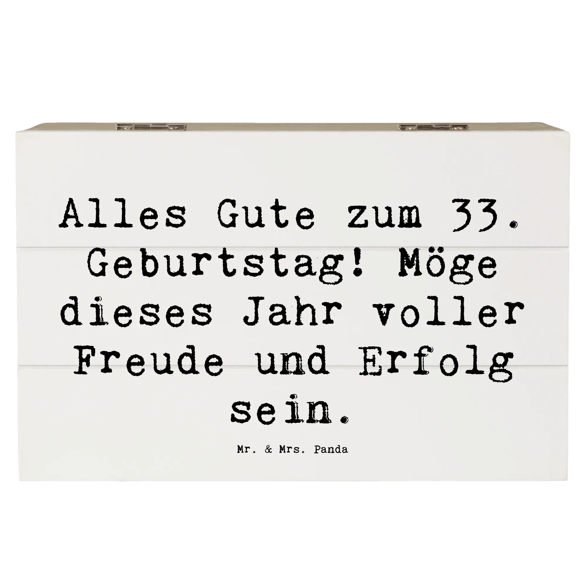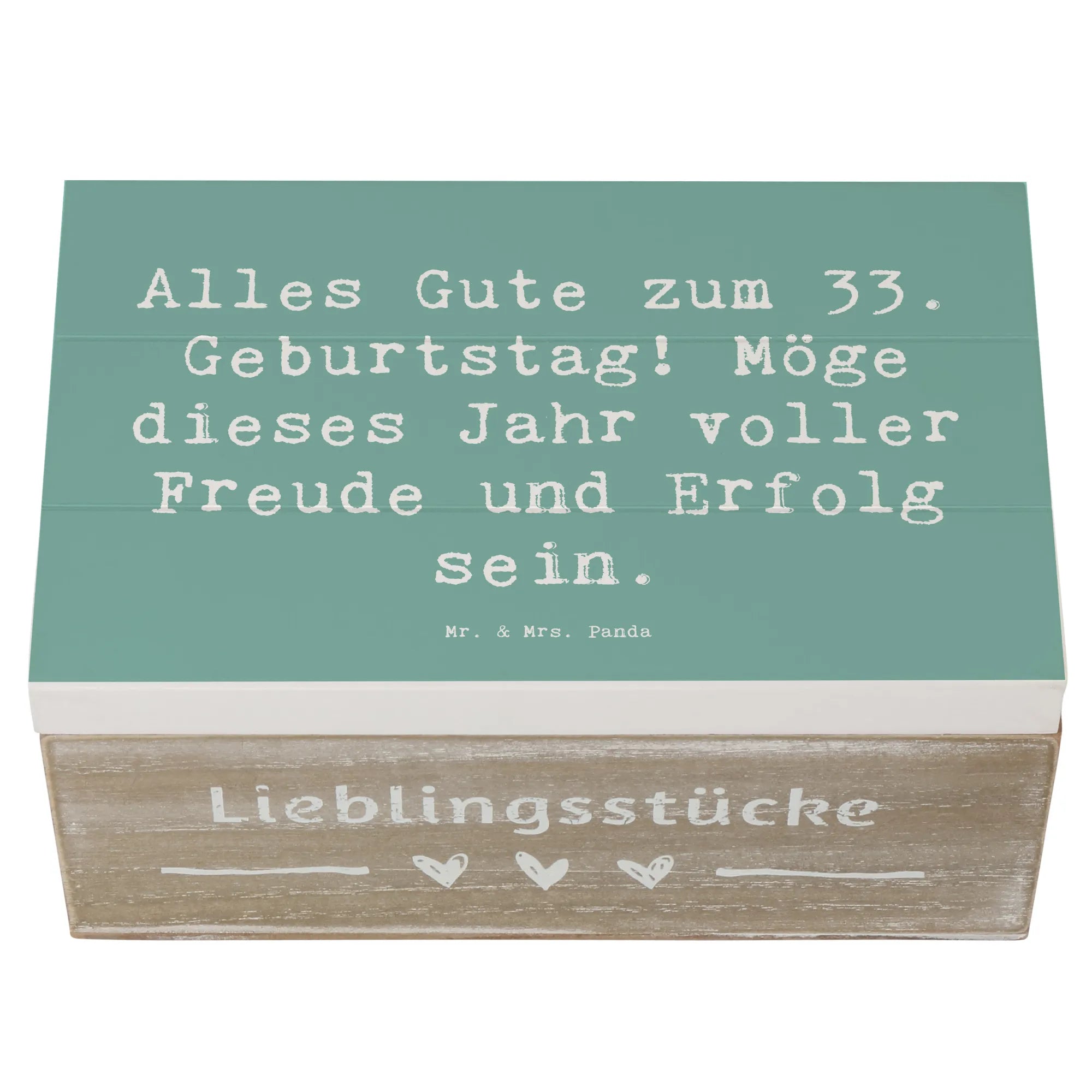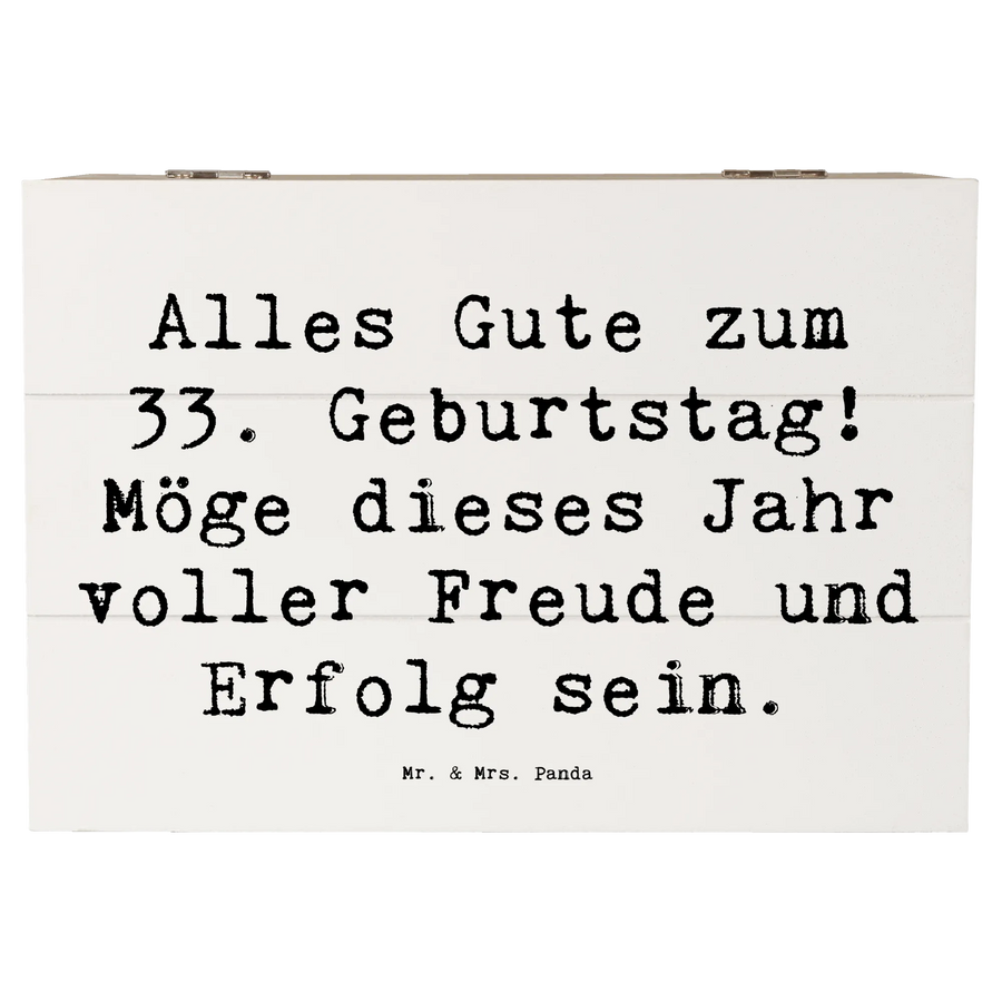 Die wunderschöne Holzkiste von Mr. & Mrs. Panda ist das perfekte Geschenk zum 33. Geburtstag! Mit dem liebevollen Spruch 'Alles Gute zum 33. Geburtstag! Möge dieses Jahr voller Freude und Erfolg sein.' eignet sie sich ideal, um wundervolle Erinnerungen und Schätze aufzubewahren.