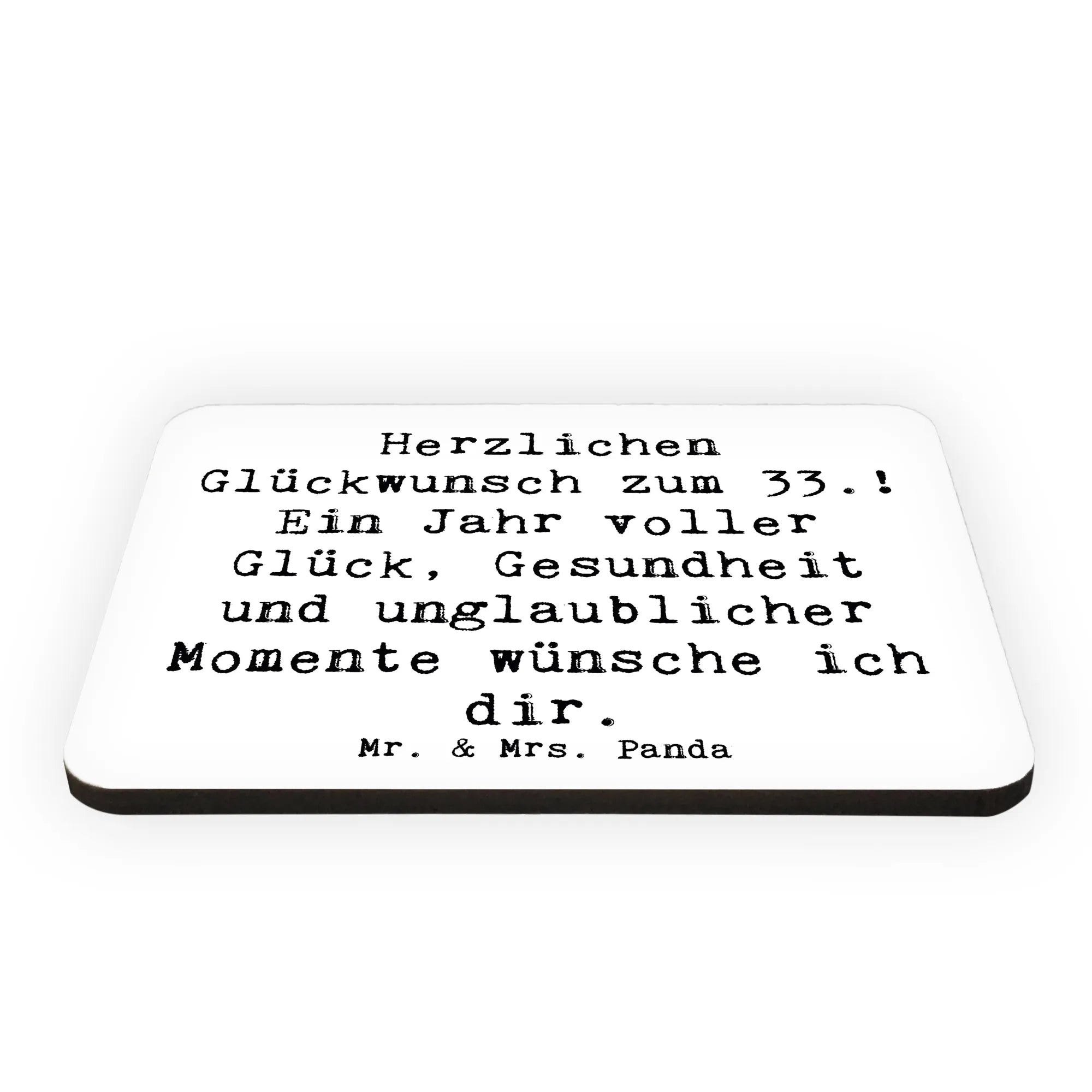 Der Kühlschrankmagnet von Mr. & Mrs. Panda für den 33. Geburtstag ist das perfekte Geschenk für alle, die diesen besonderen Tag feiern möchten. Mit dem liebevollen Spruch "Herzlichen Glückwunsch zum 33.! Ein Jahr voller Glück, Gesundheit und unglaublicher Momente wünsche ich dir" wird dieser Magnet schnell zum Highlight in jeder Küche.