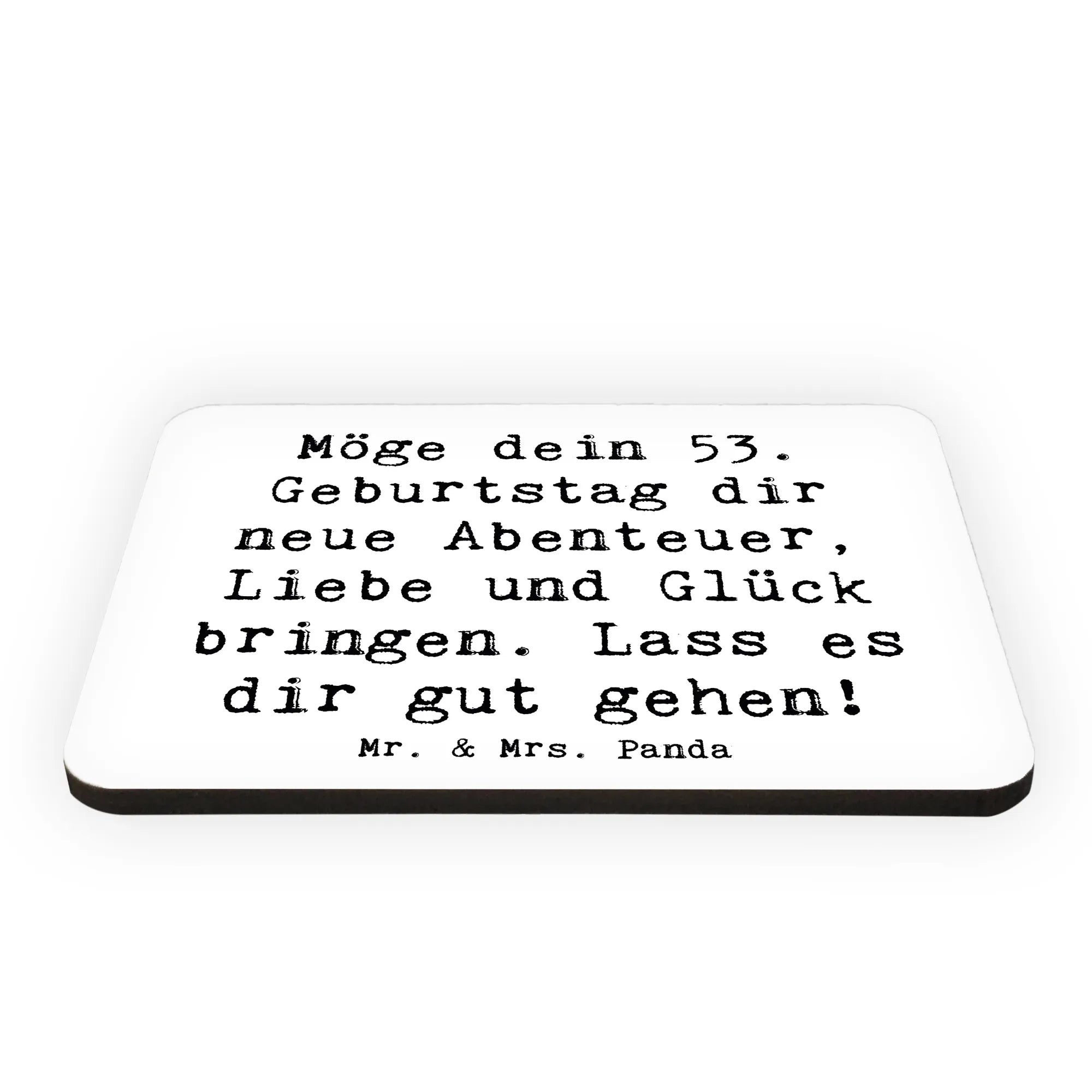Der Magnet misst 52 mm x 74 mm und ist mit einem liebevollen Spruch versehen: 'Möge dein 53. Geburtstag dir neue Abenteuer, Liebe und Glück bringen. Lass es dir gut gehen!' Dieser Spruch macht ihn zu einem herzlichen Geburtstagsgeschenk, das nicht nur praktisch ist, sondern auch ein Lächeln ins Gesicht zaubert.