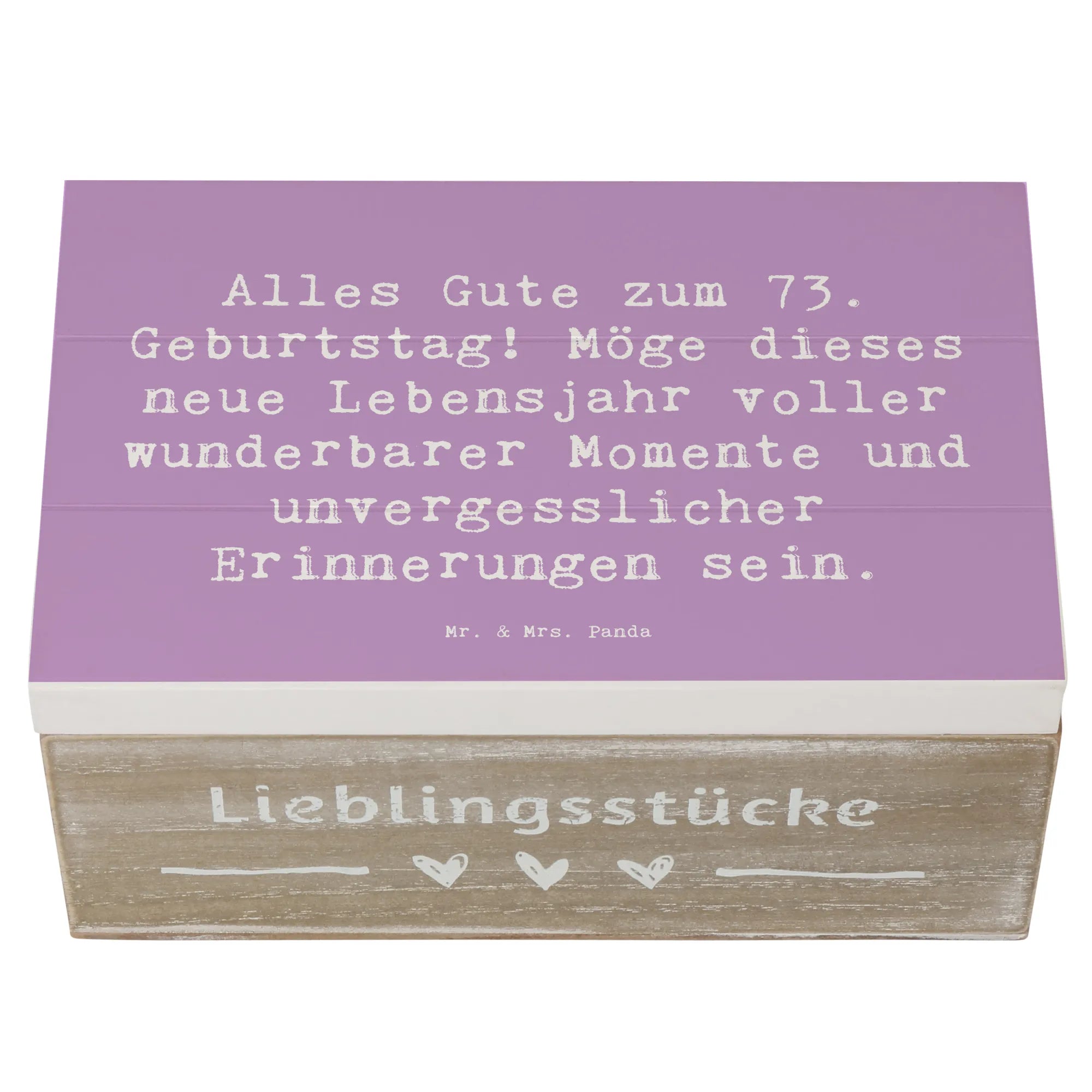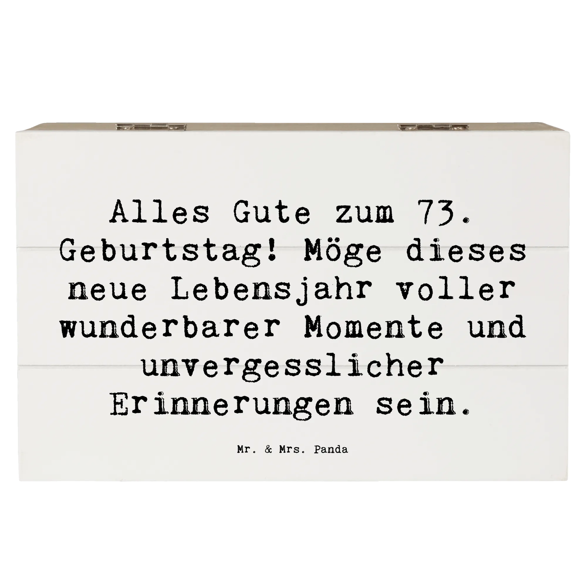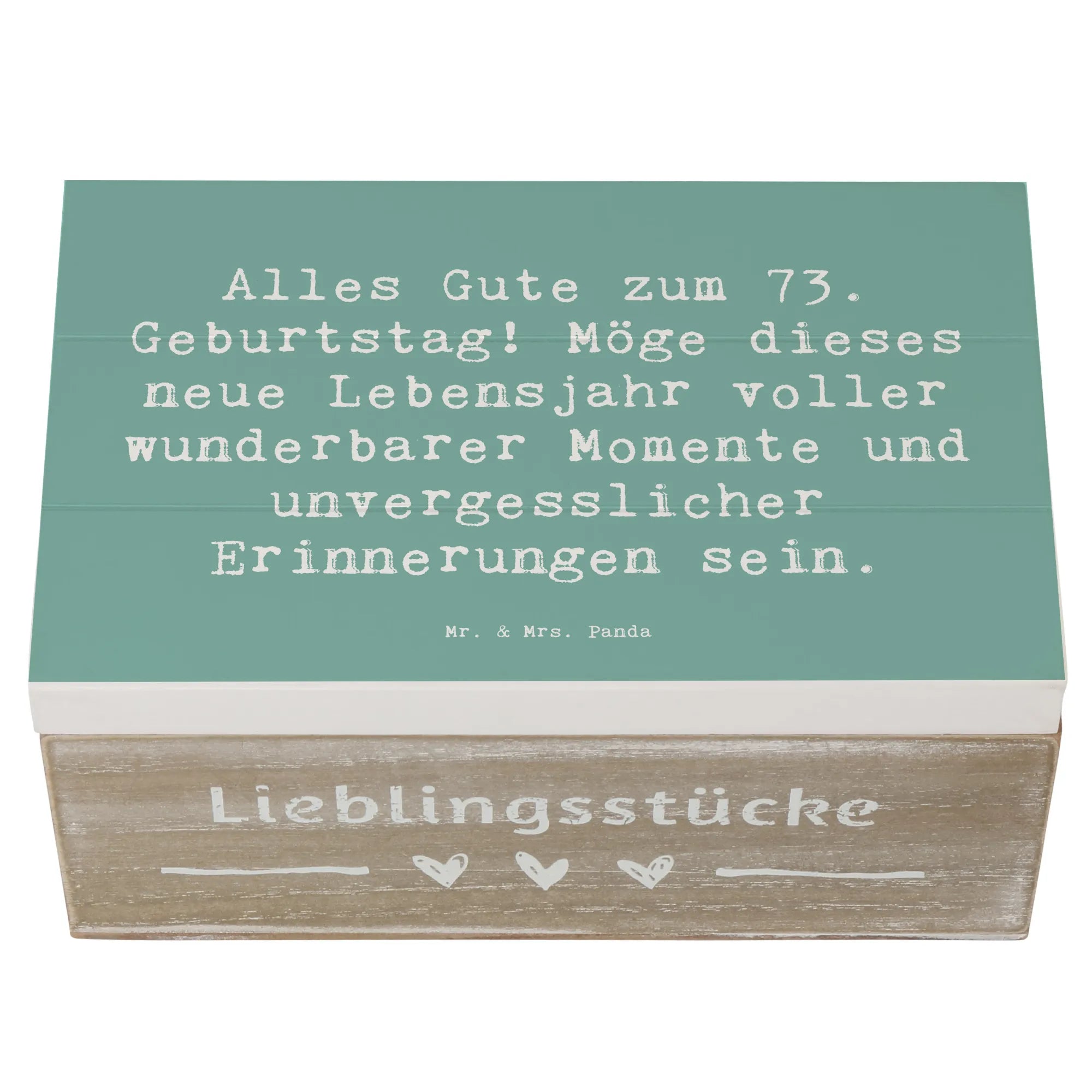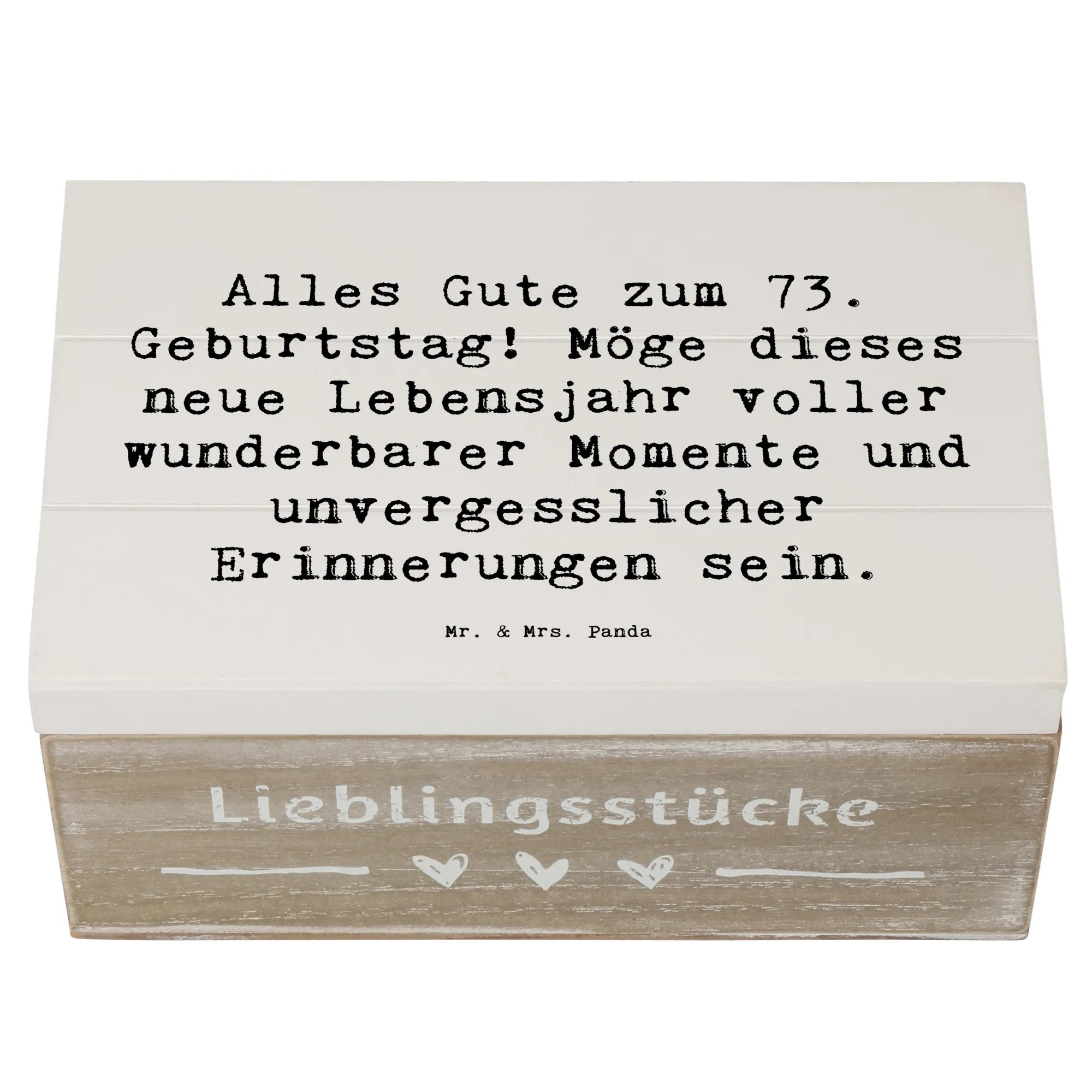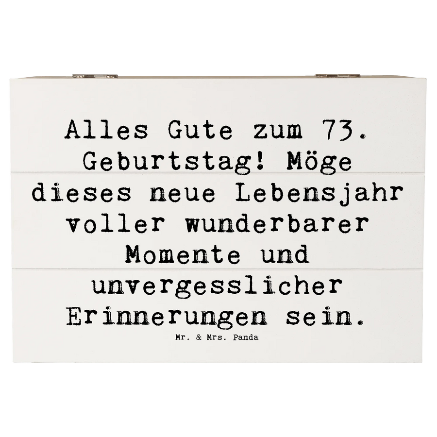 Die wunderschöne Holzkiste von Mr. & Mrs. Panda ist das perfekte Geschenk für den 73. Geburtstag! Mit einem liebevollen Slogan wie "Alles Gute zum 73. Geburtstag! Möge dieses neue Lebensjahr voller wunderbarer Momente und unvergesslicher Erinnerungen sein." zieht sie alle Blicke auf sich und bringt Freude ins Herz.