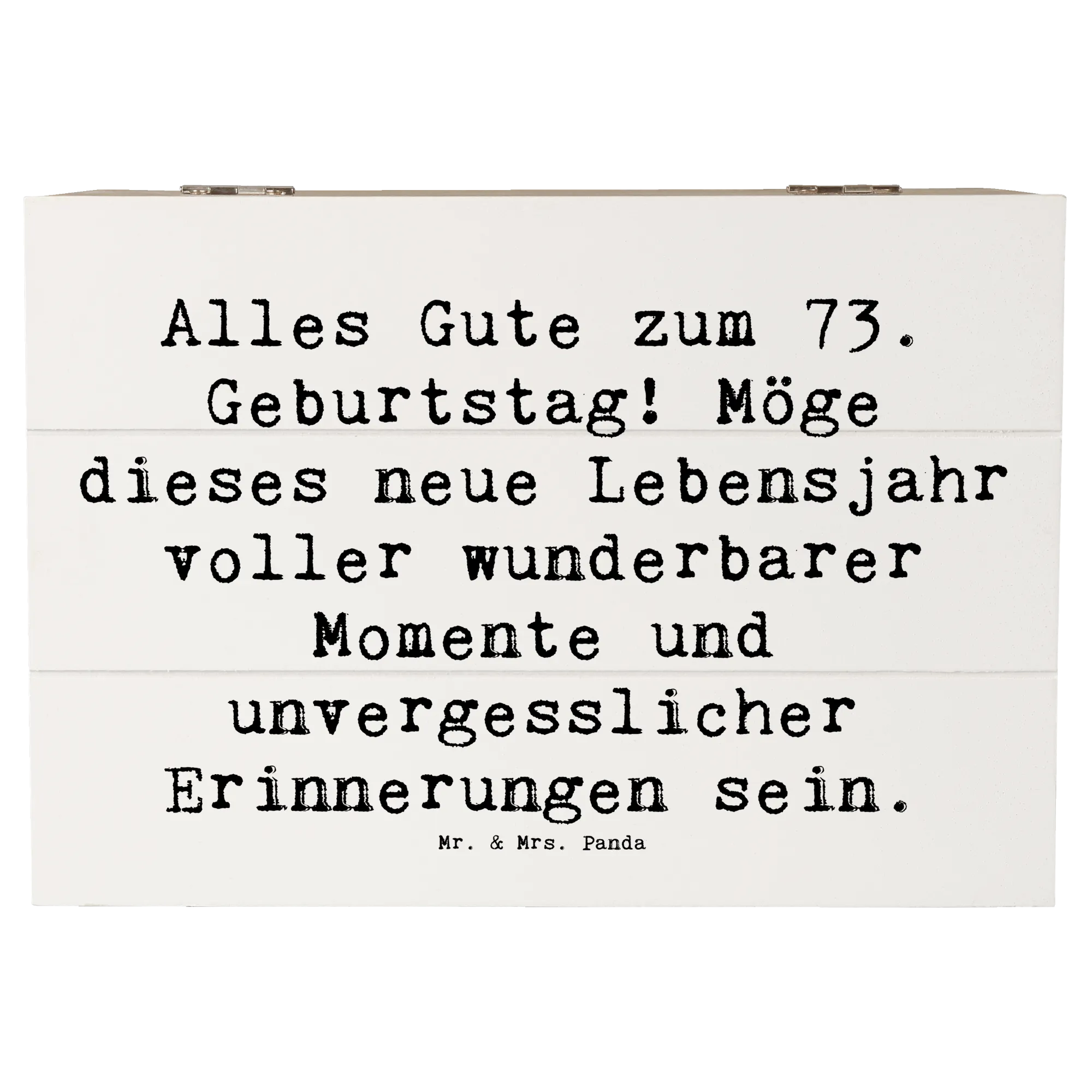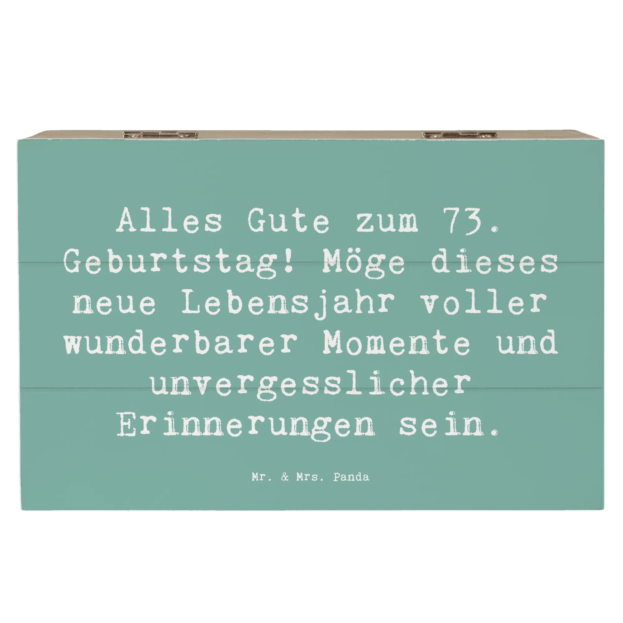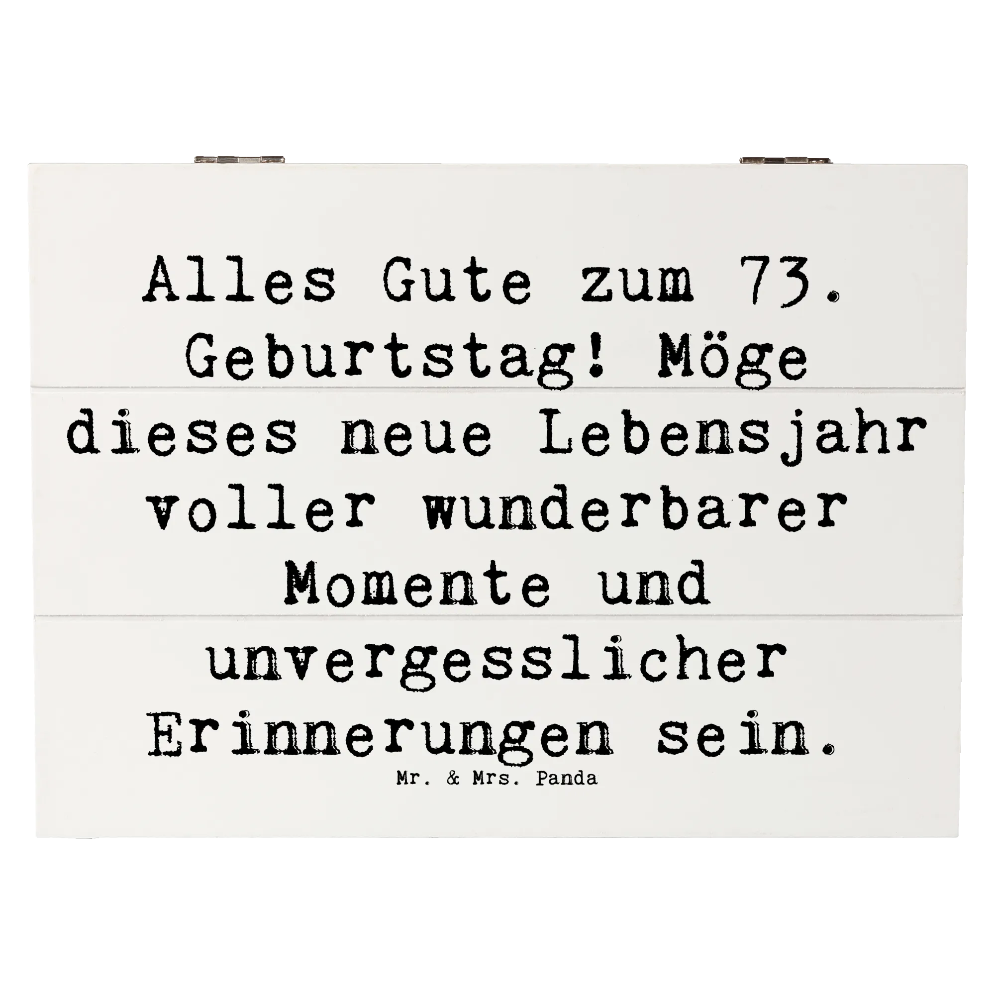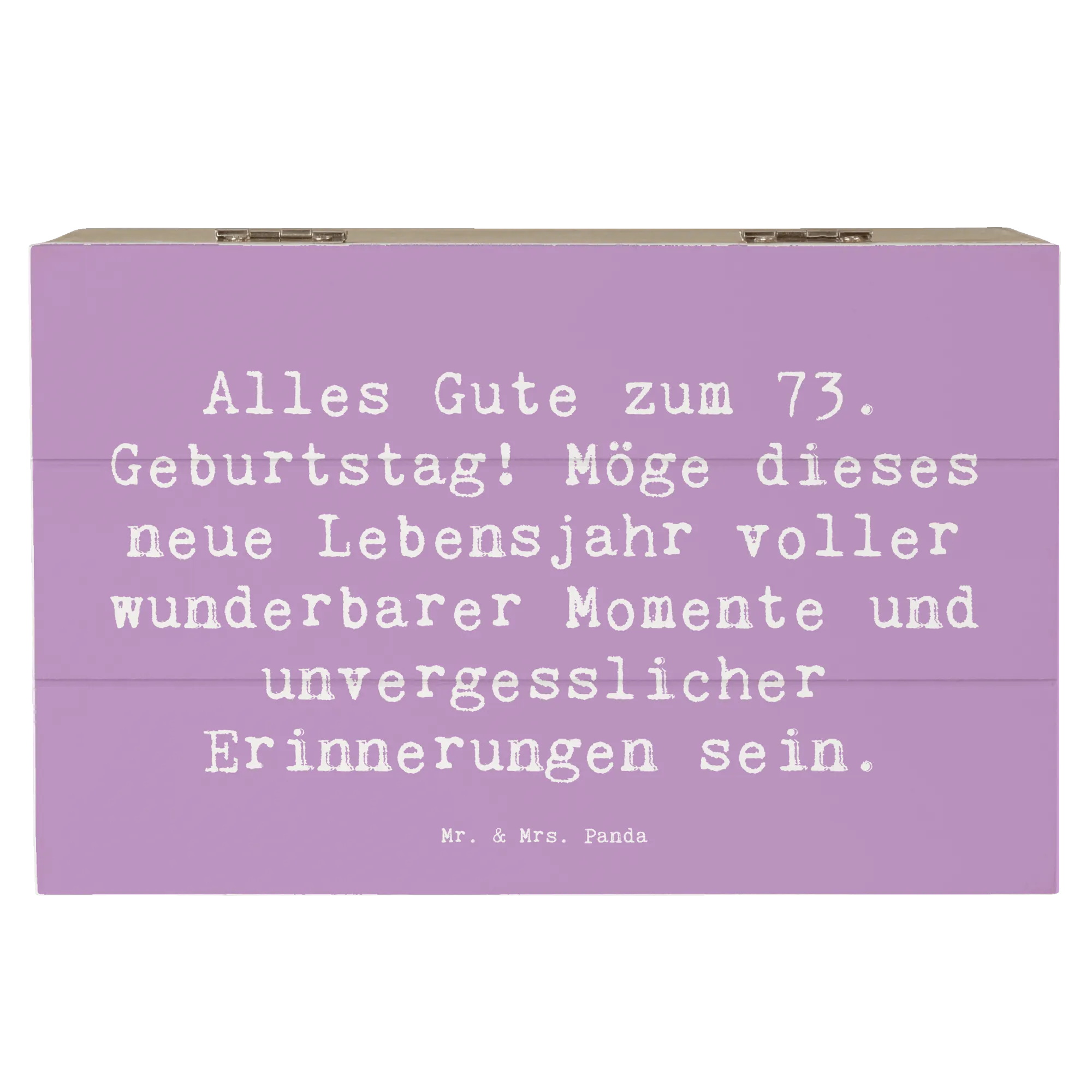 Die wunderschöne Holzkiste von Mr. & Mrs. Panda ist das perfekte Geschenk für den 73. Geburtstag! Mit einem liebevollen Slogan wie "Alles Gute zum 73. Geburtstag! Möge dieses neue Lebensjahr voller wunderbarer Momente und unvergesslicher Erinnerungen sein." zieht sie alle Blicke auf sich und bringt Freude ins Herz.