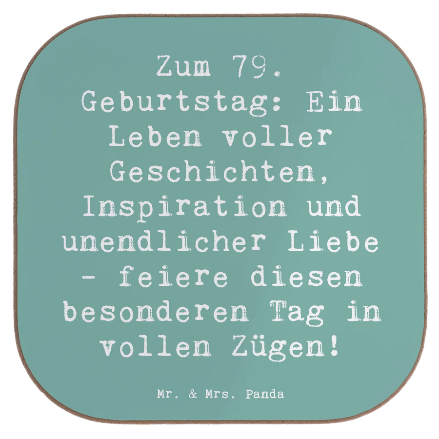 Der wunderschöne quadratische Untersetzer von Mr. & Mrs. Panda ist das perfekte Geschenk zum 79. Geburtstag! Ob als Geschenk für die besten Freunde, Verwandte oder sogar für dich selbst – dieser Untersetzer bringt Freude und Ausstrahlung in jedes Zuhause. Bedruckt mit dem herzerwärmenden Spruch: "Zum 79. Geburtstag: Ein Leben voller Geschichten, Inspiration und unendlicher Liebe - feiere diesen besonderen Tag in vollen Zügen!", ist er nicht nur ein nützliches Accessoire, sondern auch ein wunderbares Kunstwerk.