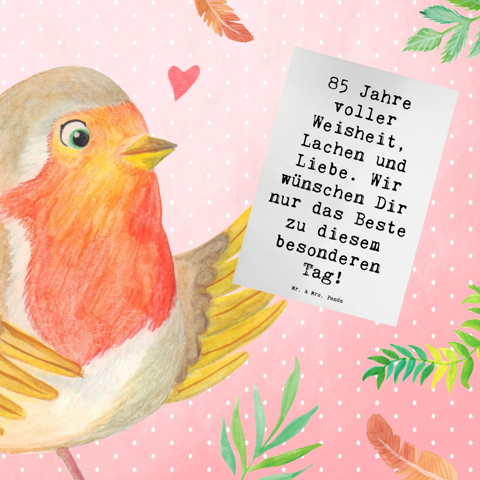 Feiere den 85. Geburtstag mit dieser einzigartigen Grußkarte von Mr. & Mrs. Panda! Die Karte mit dem liebevollen Spruch "85 Jahre voller Weisheit, Lachen und Liebe. Wir wünschen Dir nur das Beste zu diesem besonderen Tag!" ist das perfekte Geschenk für alle, die diesen besonderen Meilenstein im Leben feiern.