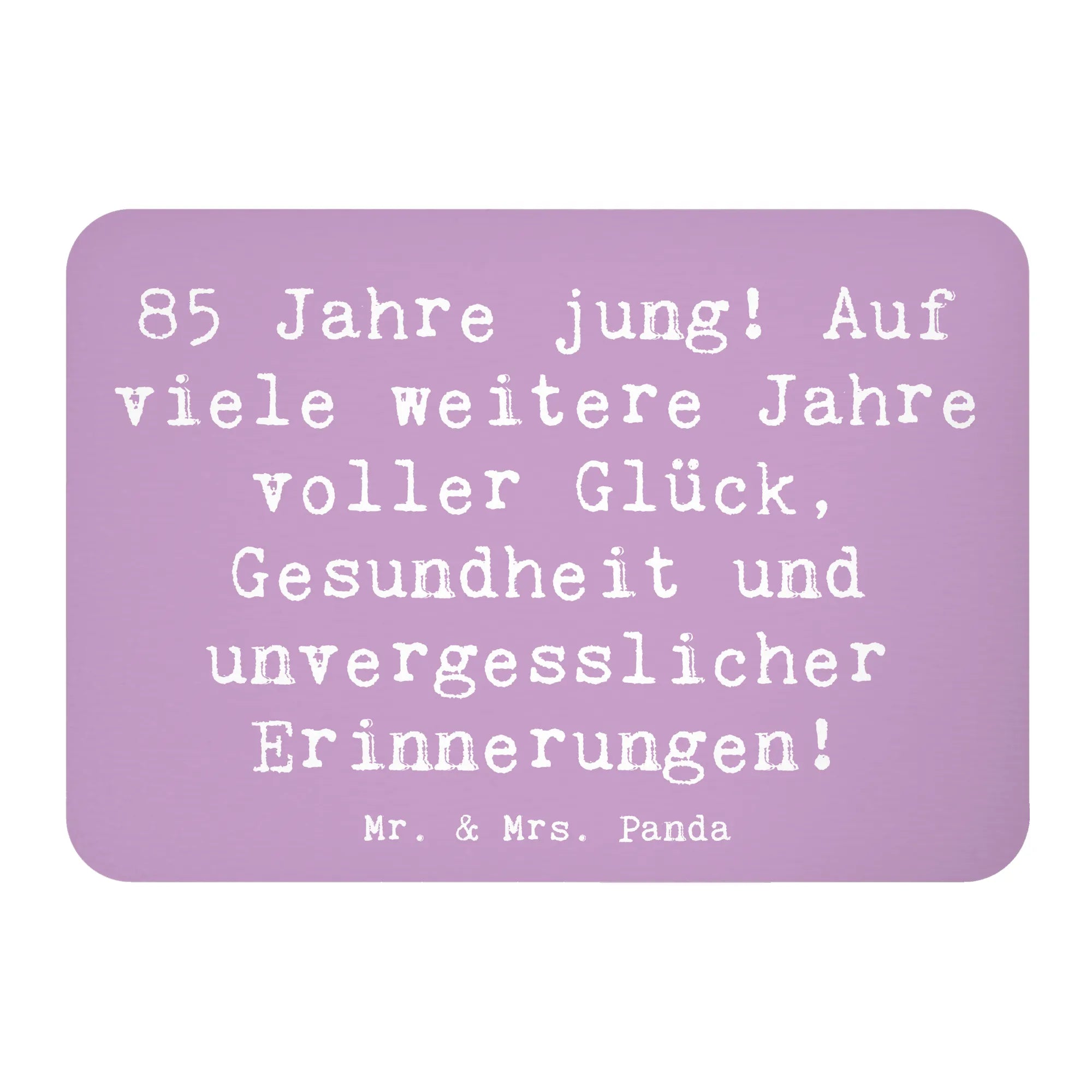 Der Kühlschrankmagnet "85 Jahre jung! Auf viele weitere Jahre voller Glück, Gesundheit und unvergesslicher Erinnerungen!" von Mr. & Mrs. Panda ist das perfekte Geschenk für jeden, der einen besonderen 85. Geburtstag feiern möchte. Dieser Magnet ist nicht nur ein praktisches Accessoire für deinen Kühlschrank oder das Whiteboard, sondern auch ein liebevolles Erinnerungsstück, das jeden Betrachter zum Schmunzeln bringt.