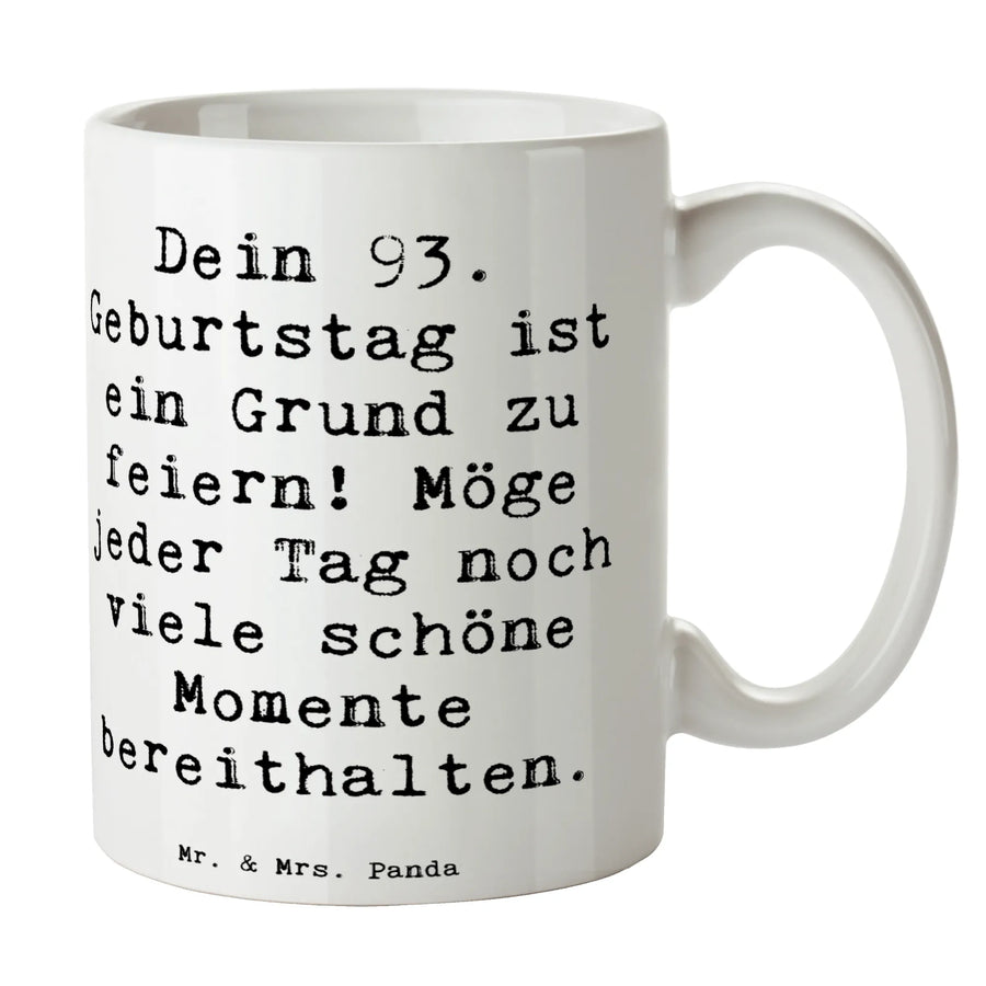 Die wunderschöne Tasse zum 93. Geburtstag von Mr. & Mrs. Panda ist das perfekte Geschenk für alle, die diesen besonderen Tag mit Freude und Stil feiern möchten! Mit dem liebevollen Slogan „Dein 93. Geburtstag ist ein Grund zu feiern! Möge jeder Tag noch viele schöne Momente bereithalten.“ bringt diese Tasse Freude in jeden Alltag.