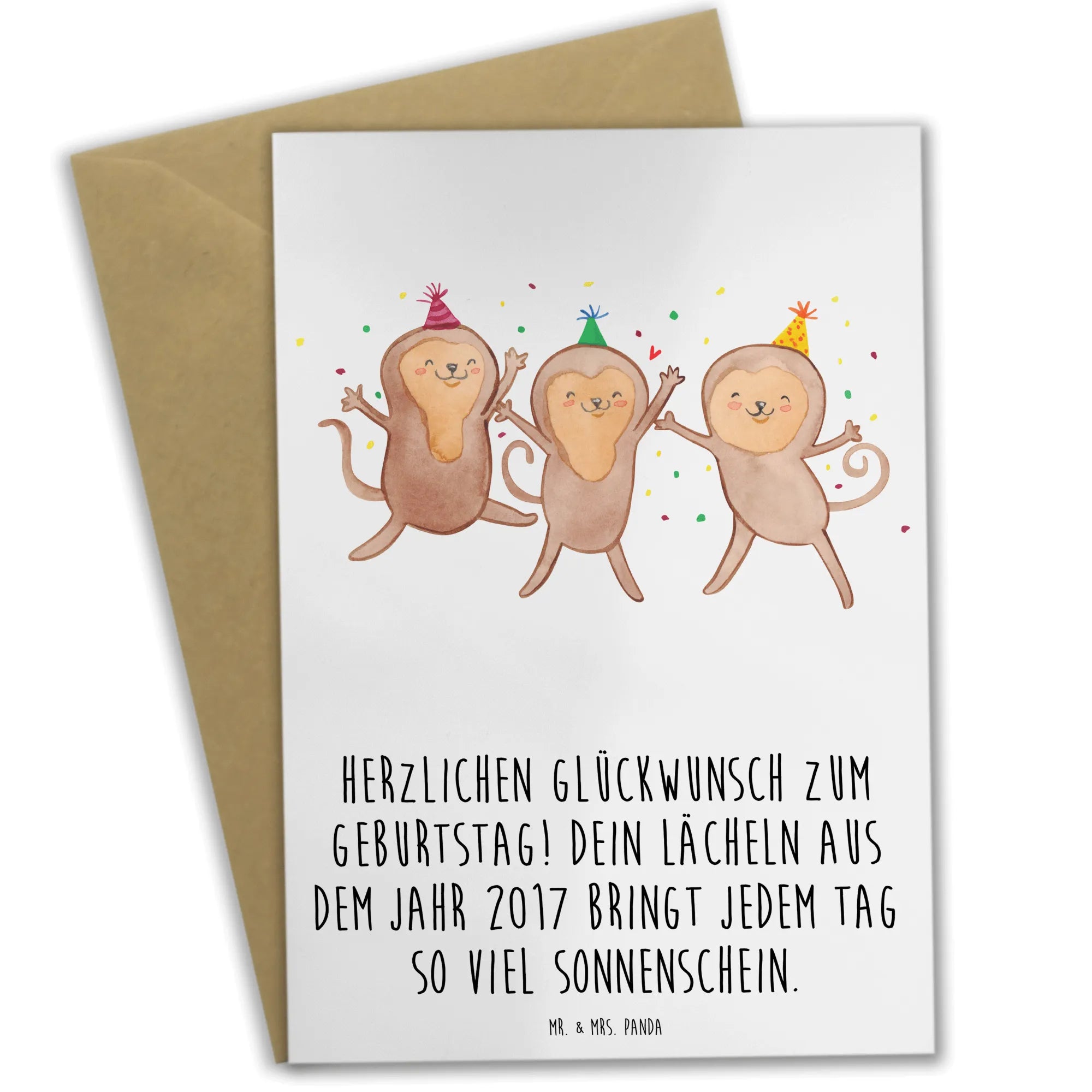 Die Grußkarte "Herzlichen Glückwunsch zum Geburtstag! Dein Lächeln aus dem Jahr 2017 bringt jedem Tag so viel Sonnenschein." von Mr. & Mrs. Panda ist das perfekte Geschenk für jeden, der in diesem Jahr seinen Geburtstag feiert. Mit der liebevoll gestalteten Karte kannst Du nicht nur Deine herzlichen Glückwünsche überbringen, sondern auch eine persönliche Botschaft auf der matten Innenseite verfassen. Diese zauberhafte Geburtstagskarte stammt aus der speziellen Kollektion "Geburtstag Geburtsjahr" und ist besonders für die Jahrgänge 2017 und ähnliche Anlässe geeignet.