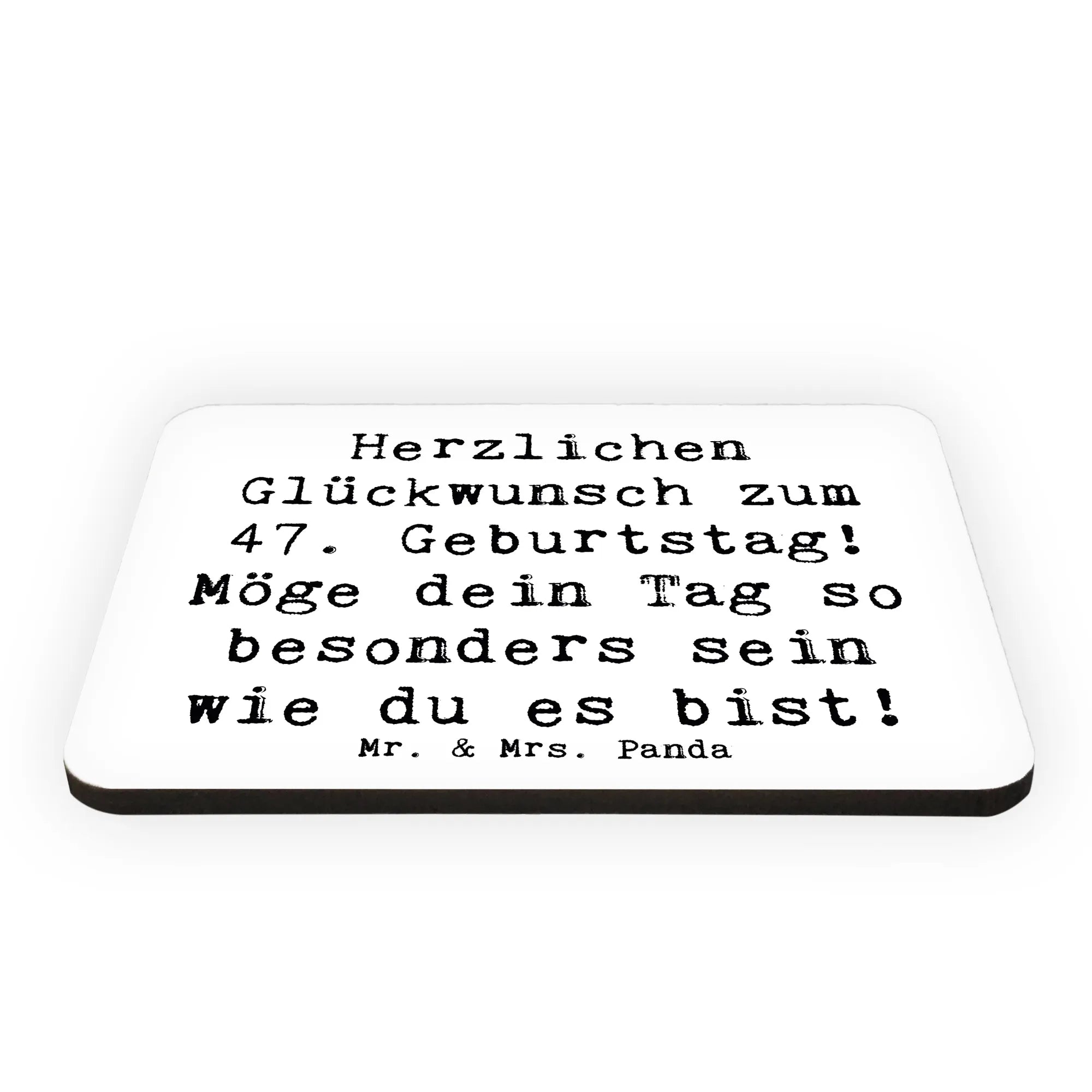 Der Kühlschrankmagnet "Herzlichen Glückwunsch zum 47. Geburtstag! Möge dein Tag so besonders sein wie du es bist!" von Mr. & Mrs. Panda ist das perfekte Geschenk für all jene, die den besonderen Tag eines geliebten Menschen gebührend feiern möchten. Mit seiner farbigen und liebevollen Gestaltung bringst du ein Lächeln auf die Gesichter der Geburtstagskinder und sorgst dafür, dass dieser Tag unvergesslich bleibt.
