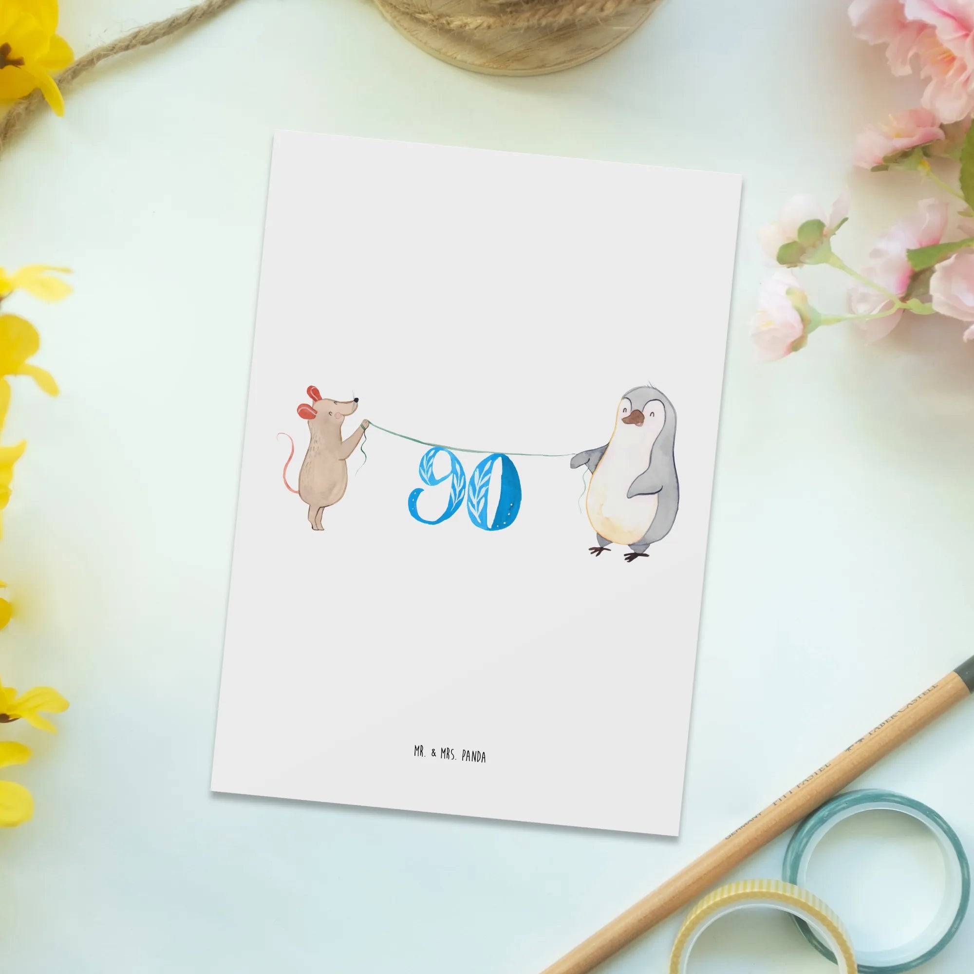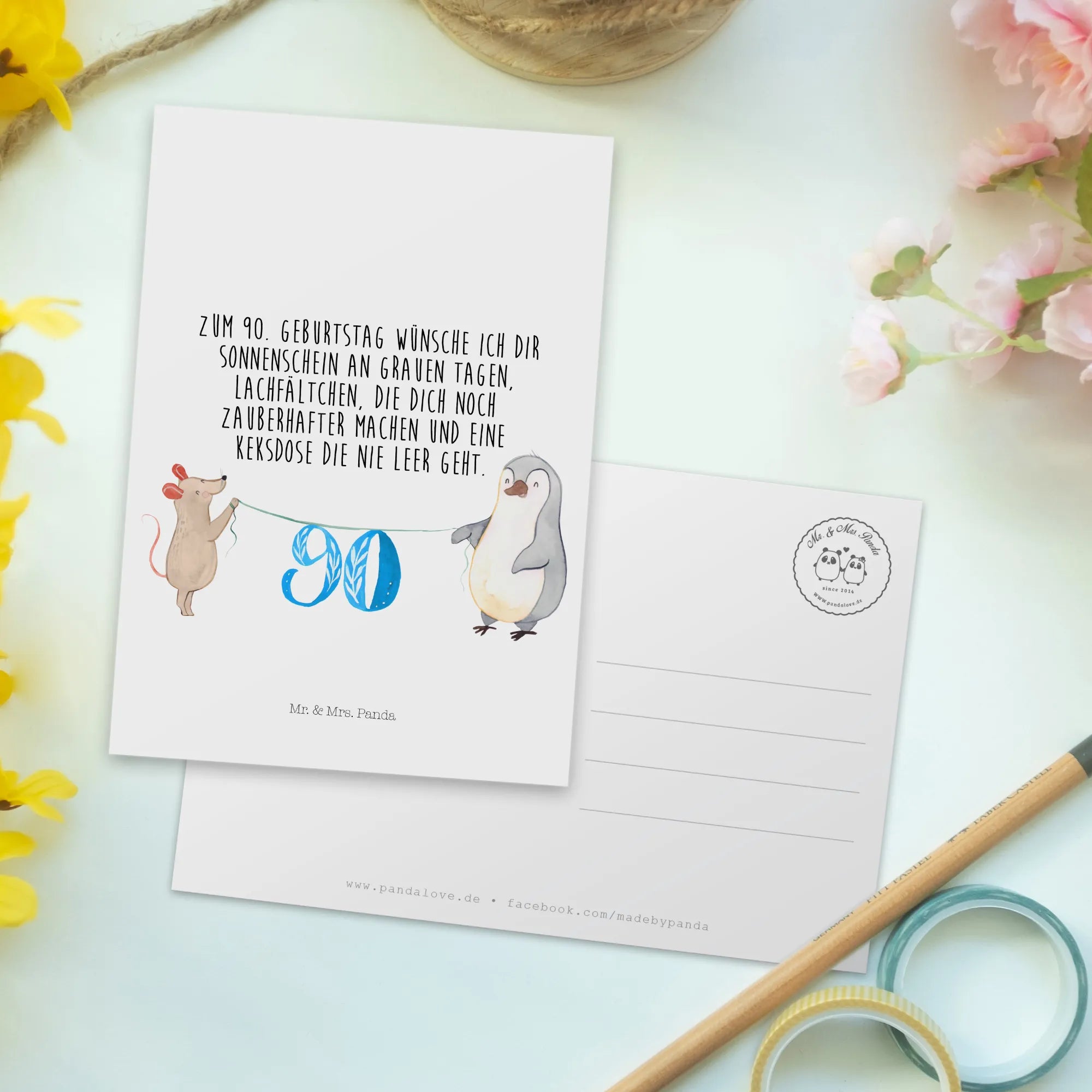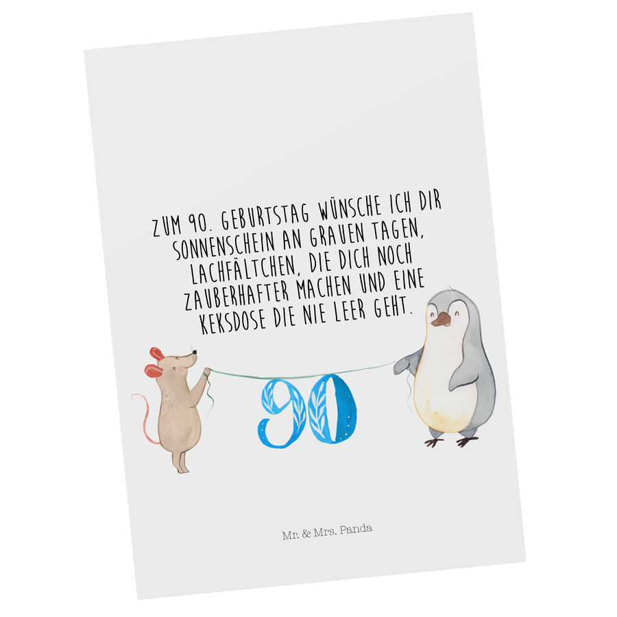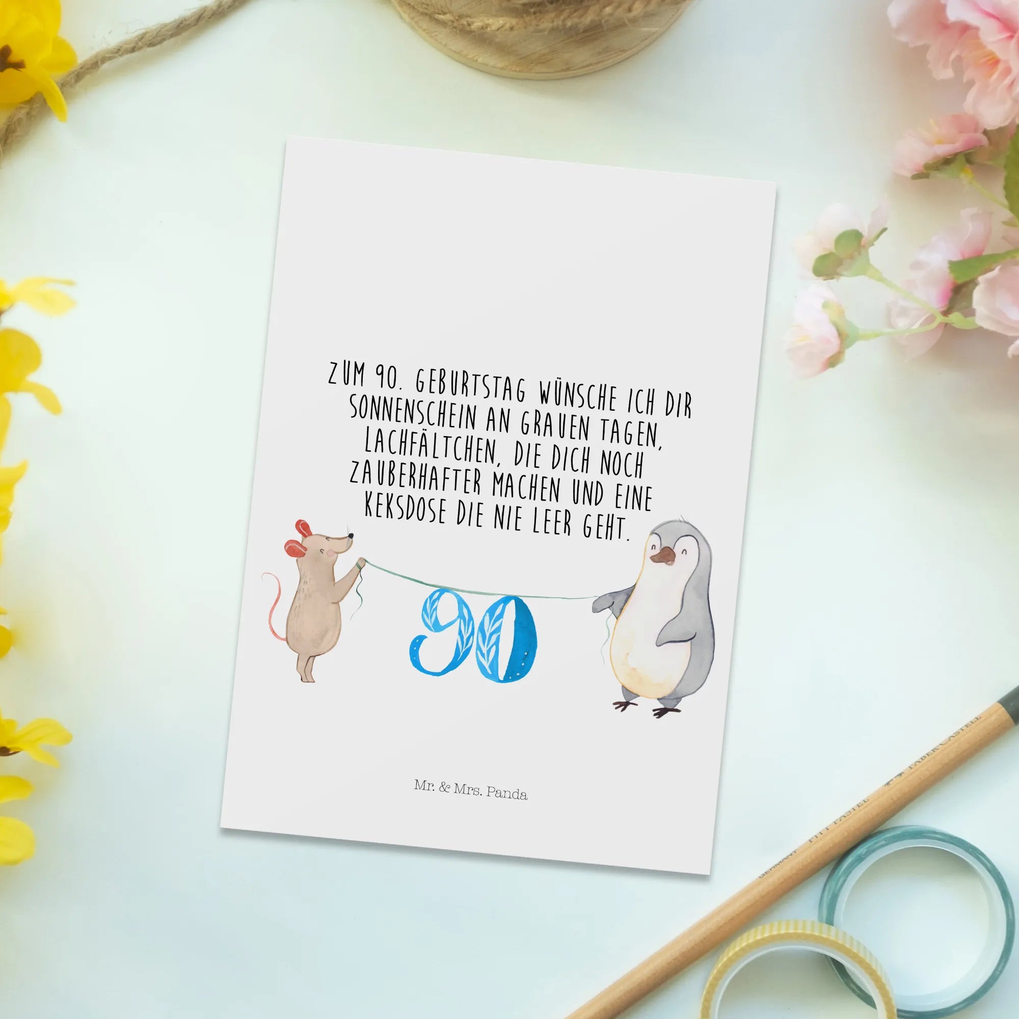 Postkarte 90. Geburtstag Maus Pinguin - mit Spruch