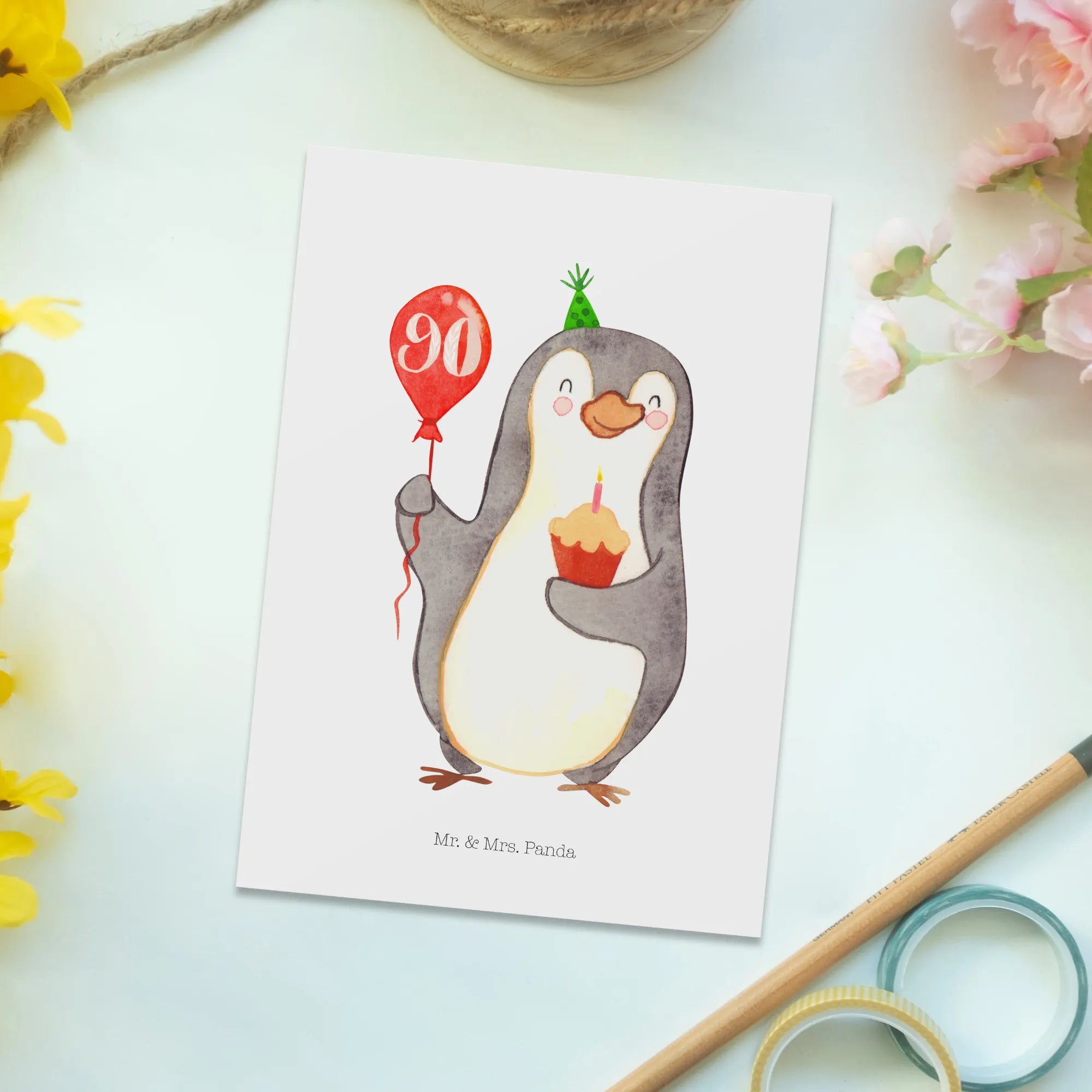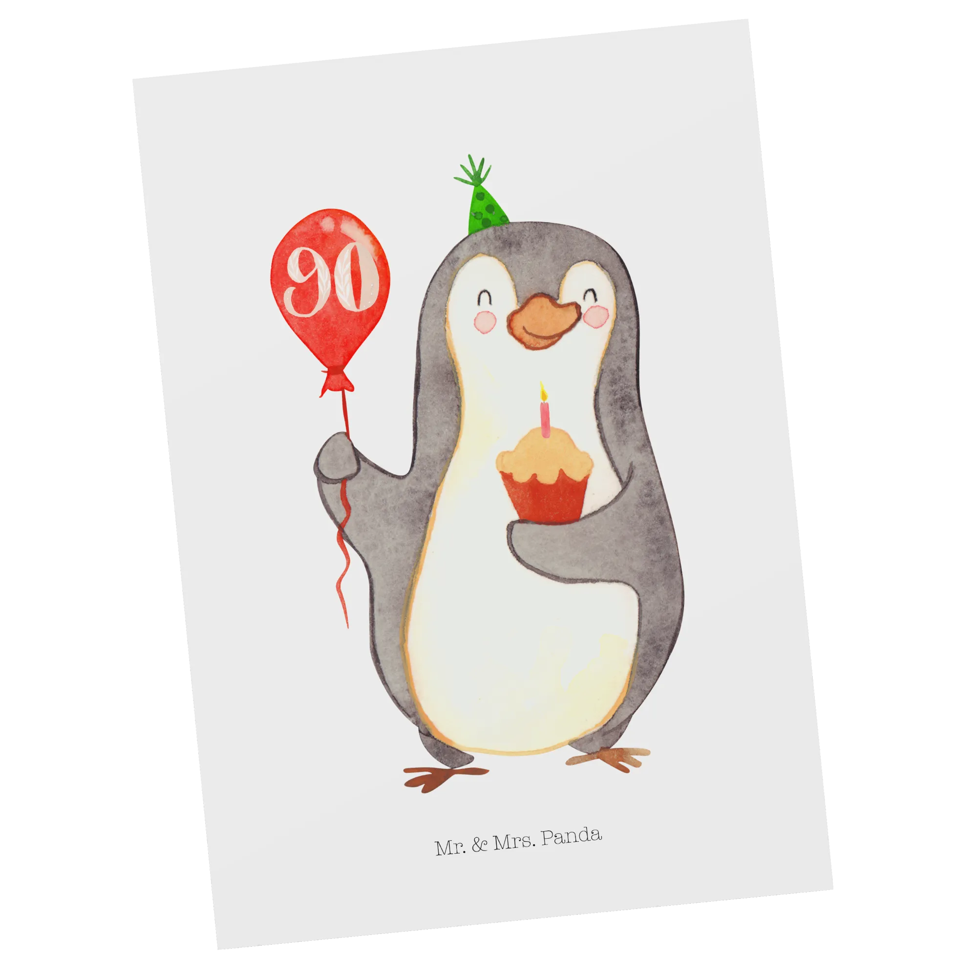 Postkarte 90. Geburtstag Pinguin Luftballon - mit Spruch