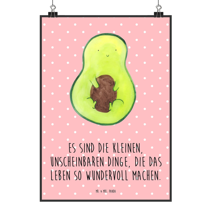 Ein wunderschönes und edles Poster von Mr. & Mrs. Panda: Unser liebevoll gezeichnetes "Avocado mit Kern" Poster verbindet niedliche Illustration mit schöner Typografie und einem warmen Lebensmotto. Die Avocado klammert sich an ihren Kern und strahlt Ruhe und Optimismus aus. Der Spruch „Es sind die kleinen, unscheinbaren Dinge, die das Leben so wundervoll machen.“ rundet das Motiv perfekt ab.