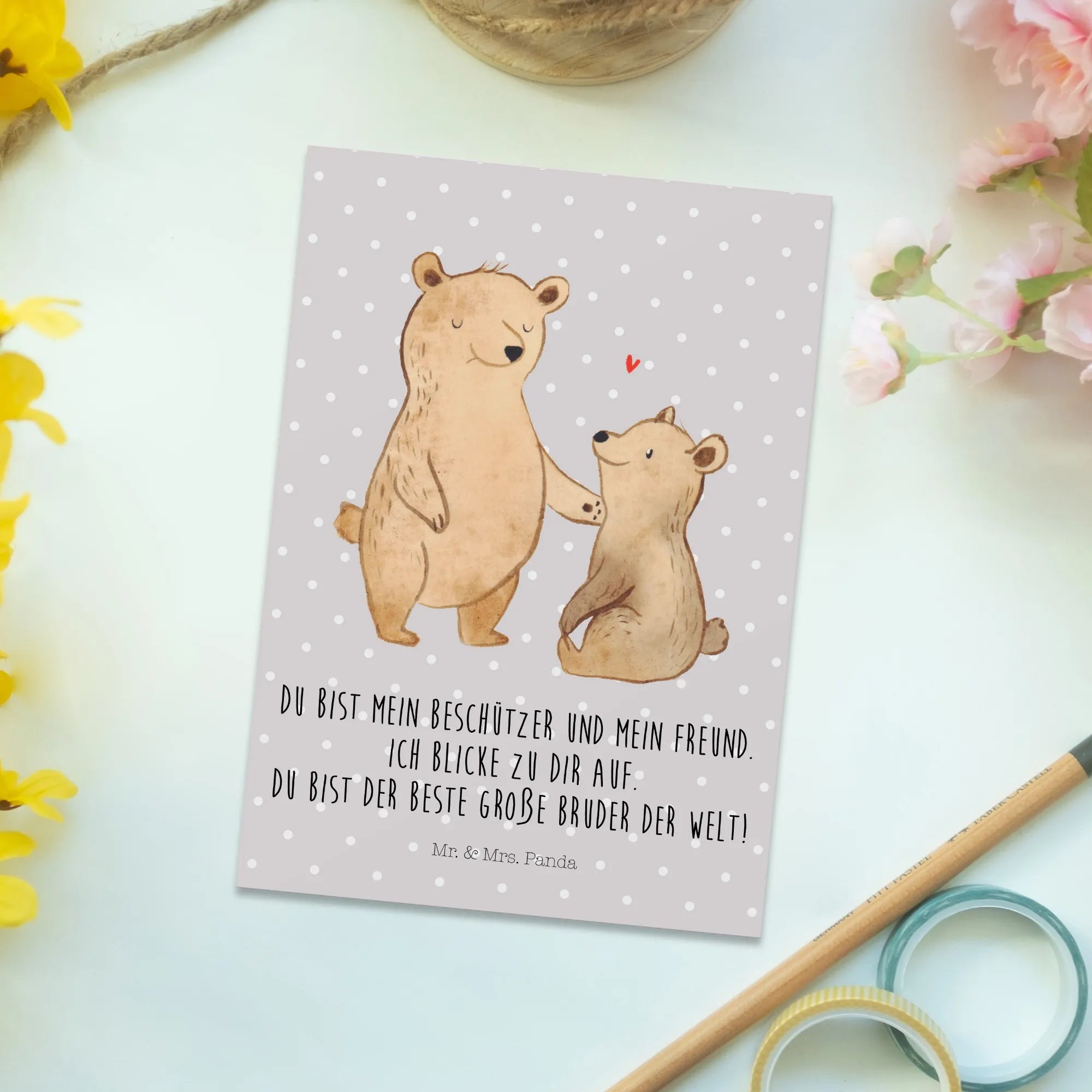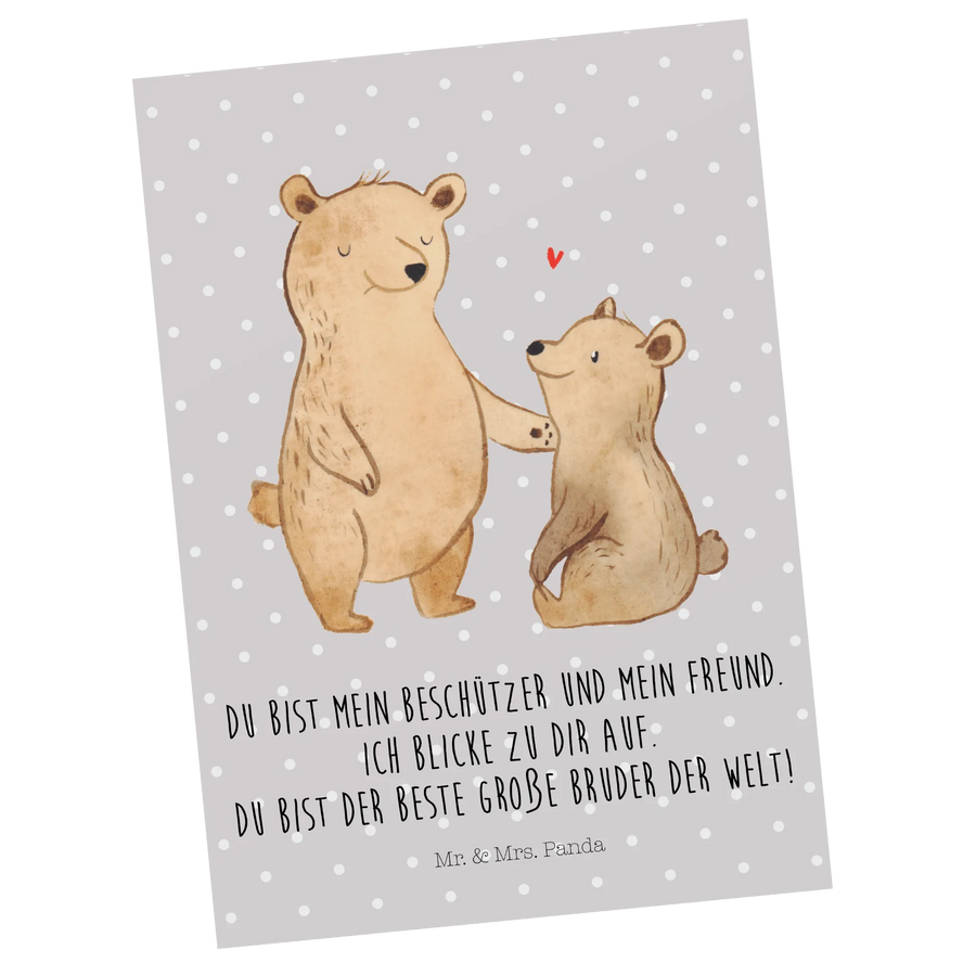 Postkarte Bär Großer Bruder - mit Spruch - Grau Pastell