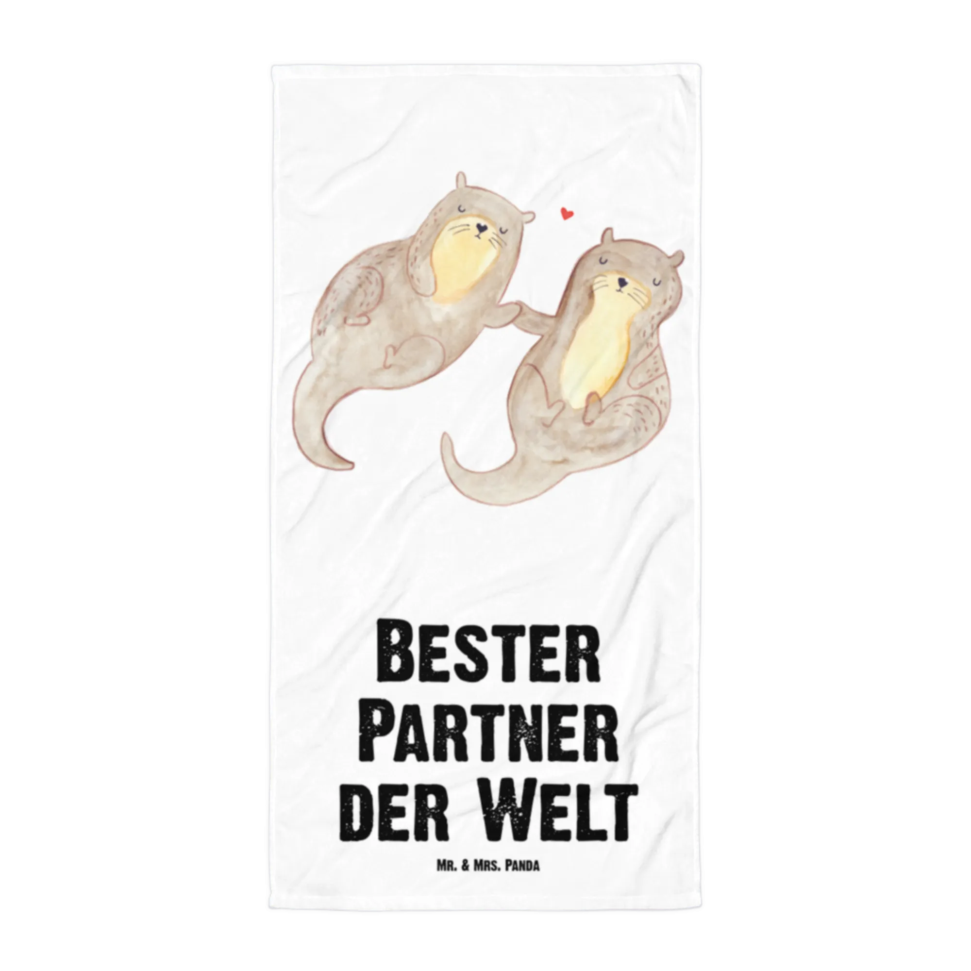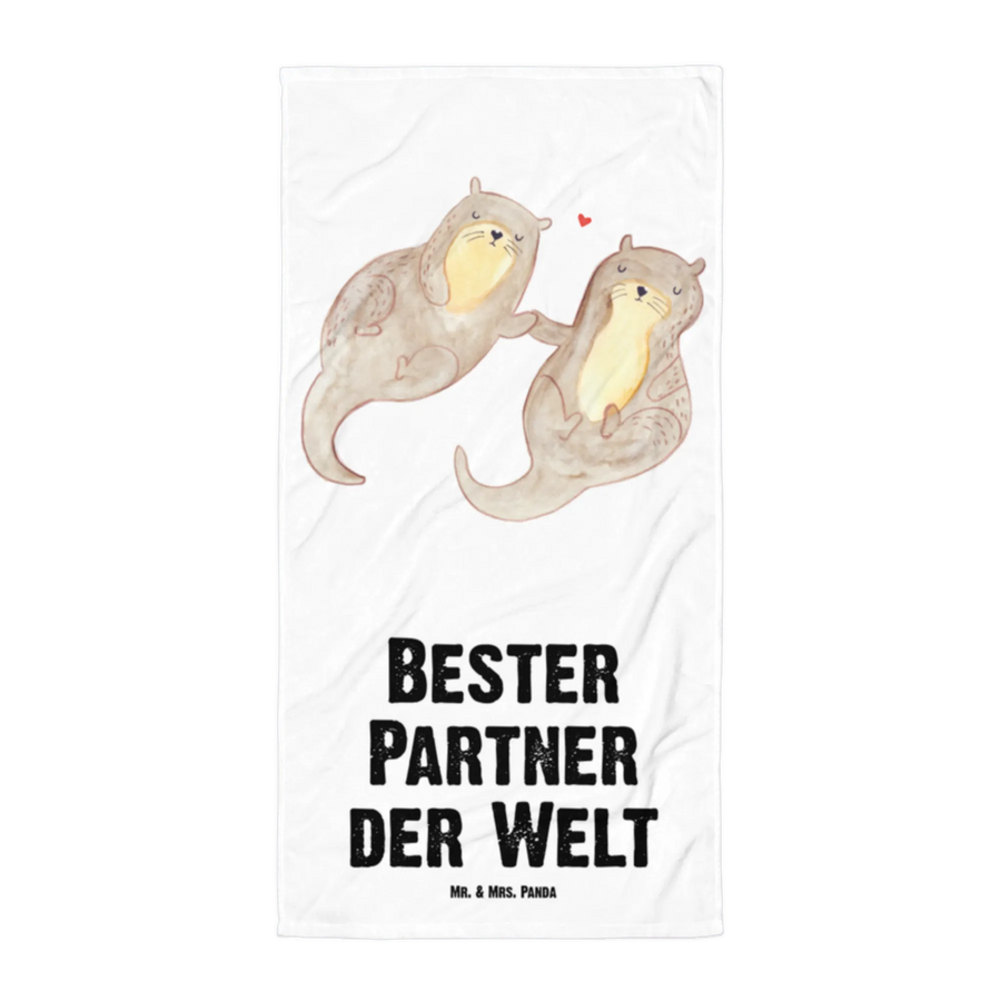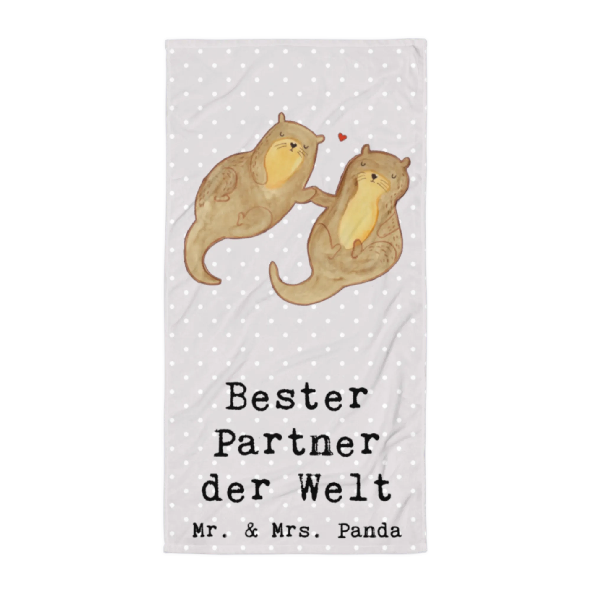 Das XL Badehandtuch mit dem süßen Otter-Motiv "Bester Partner der Welt" von Mr. & Mrs. Panda ist das perfekte Geschenk für jeden, der seinen Partner oder seine Partnerin auf eine ganz besondere Art und Weise erfreuen möchte. Mit seinen großzügigen Maßen von 1520 mm x 760 mm bietet dieses Handtuch nicht nur ausreichend Platz, sondern ist auch unglaublich flauschig und weich. Egal ob am Strand, im Schwimmbad oder in der Sauna, dieses Handtuch zieht mit seinen strahlenden Farben sofort alle Blicke auf sich.