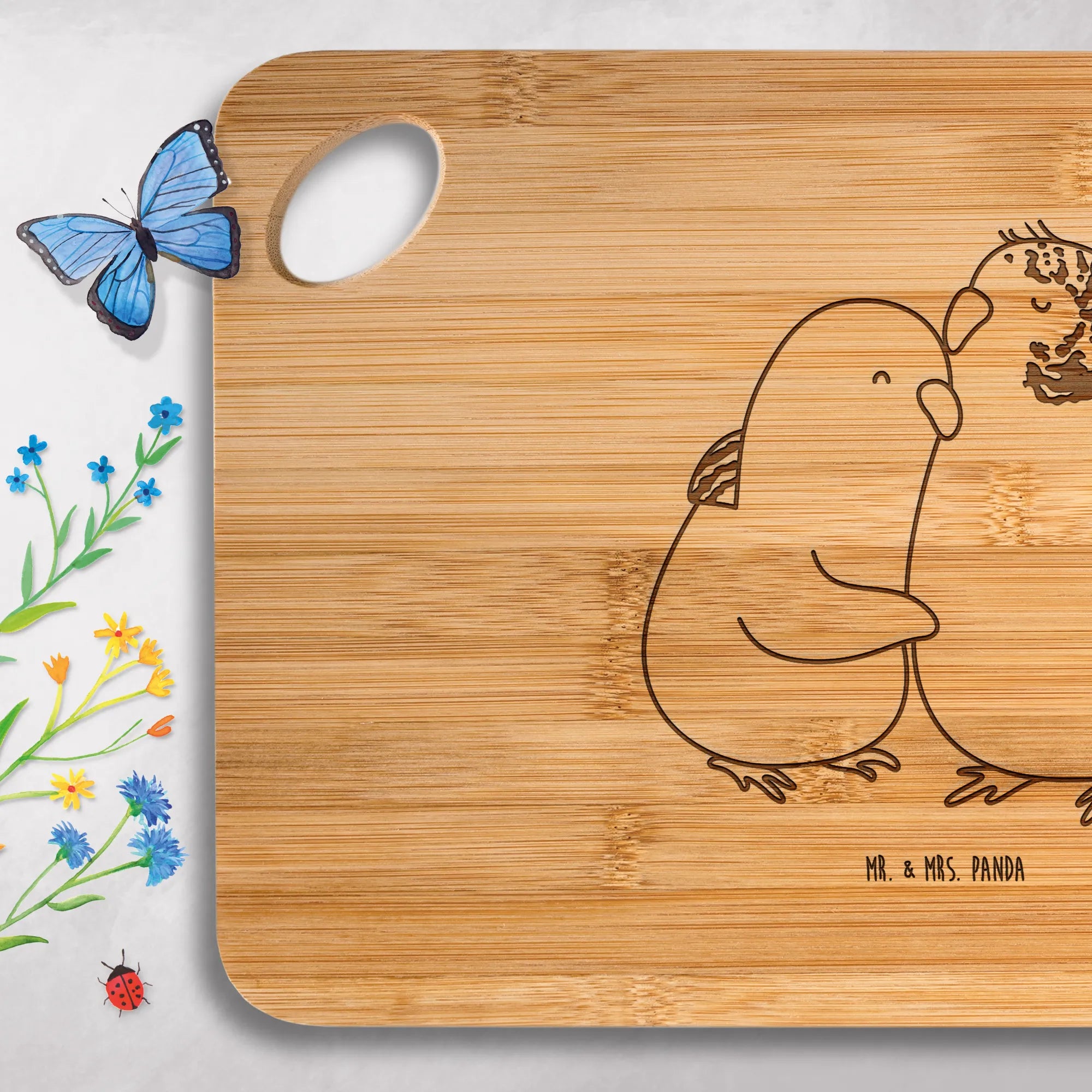 Bambus - Schneidebrett Wellensittich Liebe - mit Spruch