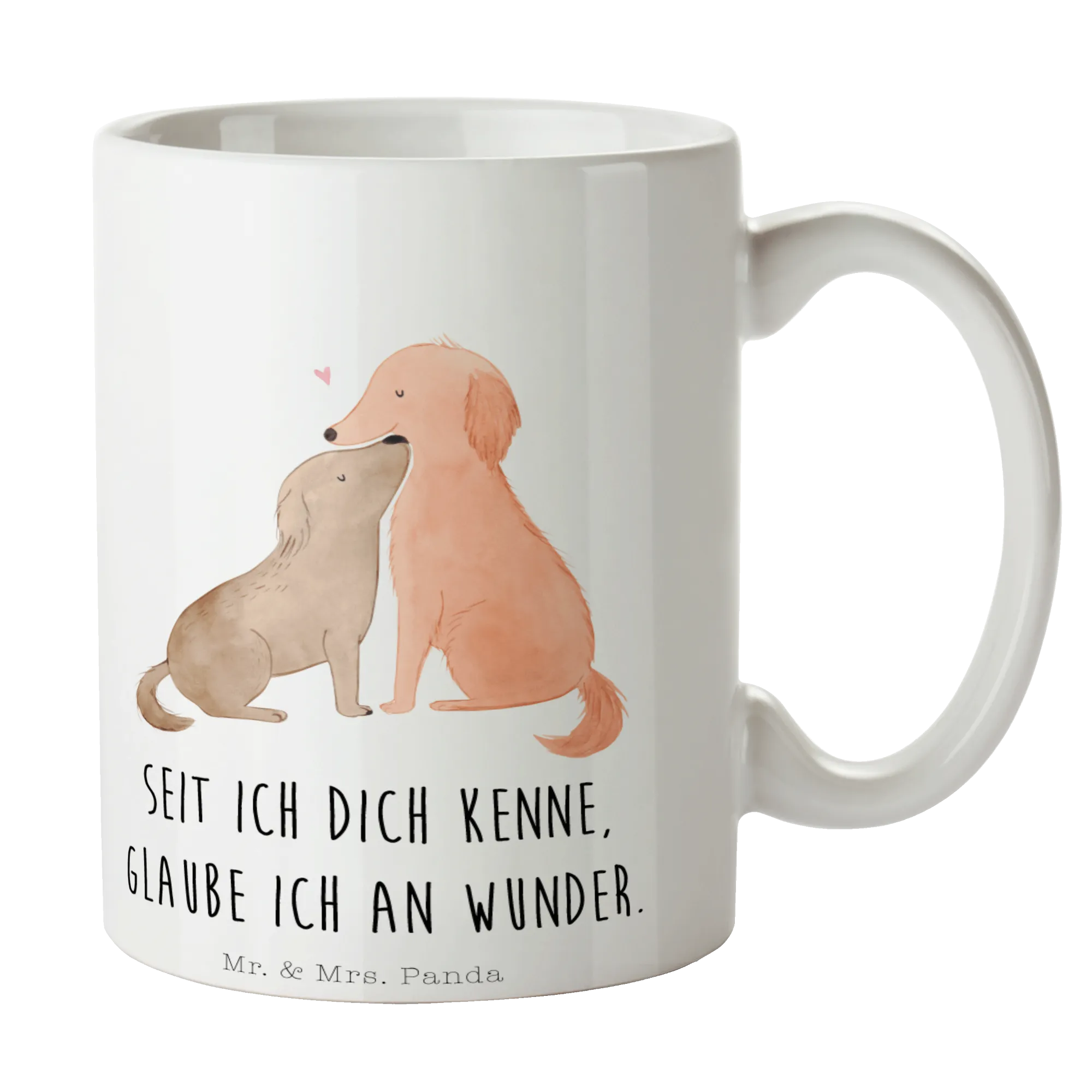 Du liebst Hunde und suchst ein besonderes Geschenk für einen Tierliebhaber? Dann ist unsere Tasse "Hunde Liebe" aus der Hunde Kollektion von Mr. & Mrs. Panda genau das richtige für dich! Diese wunderschöne, spülmaschinenfeste Keramiktasse zeigt zwei niedliche Hunde, die ganz verliebt zusammen kuscheln. Der liebevolle Entwurf fängt die Essenz der Hunde-Liebe perfekt ein und sorgt für ein Lächeln bei jedem Schluck deines Kaffees oder Tees.