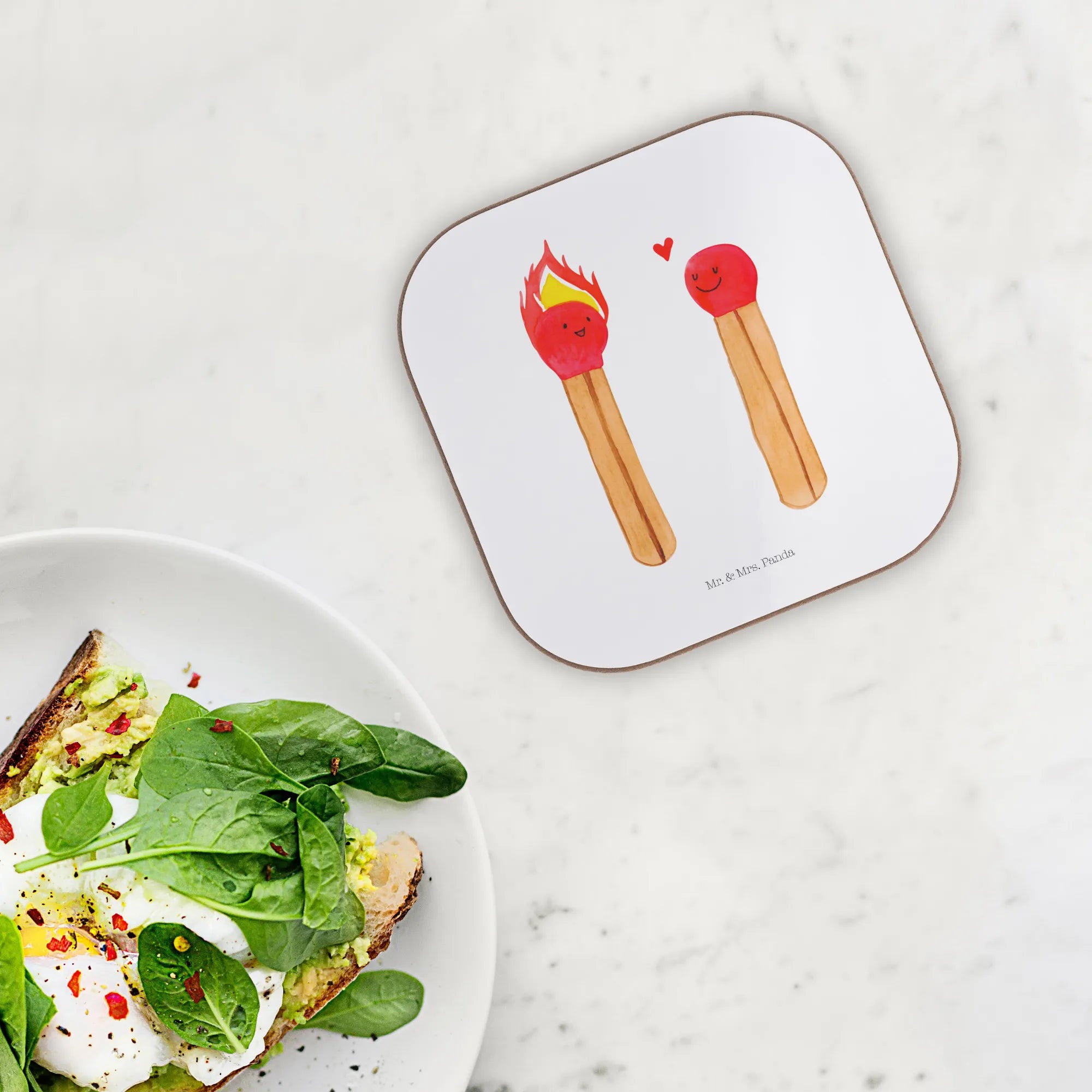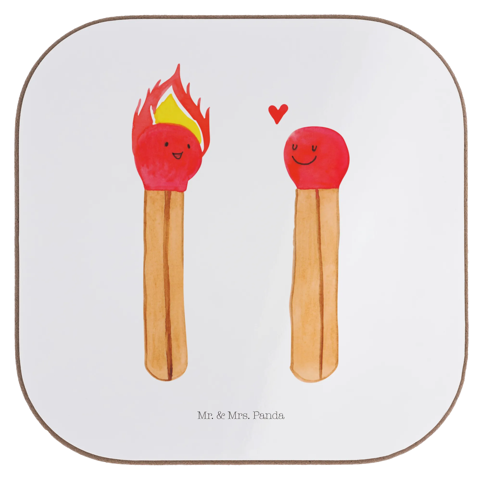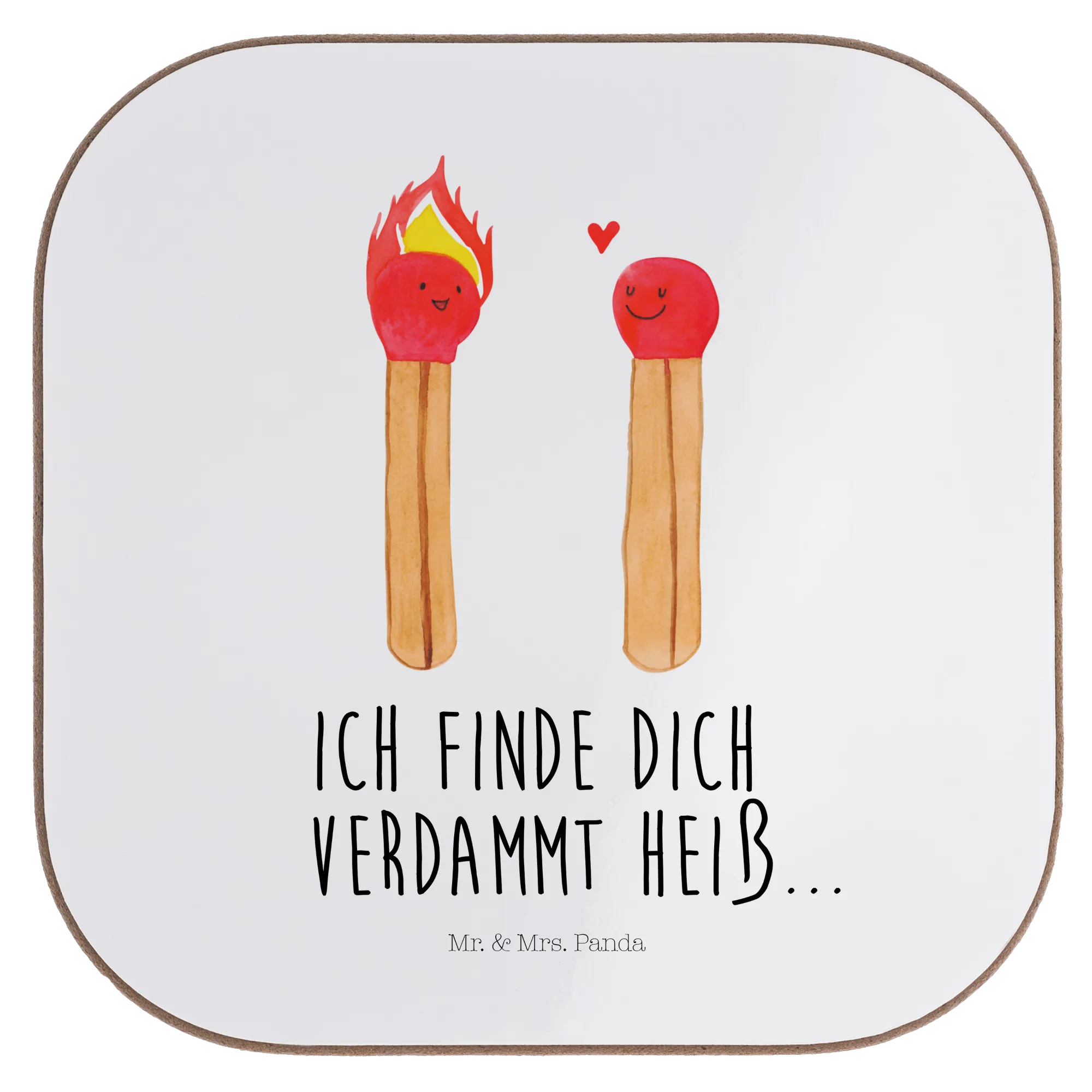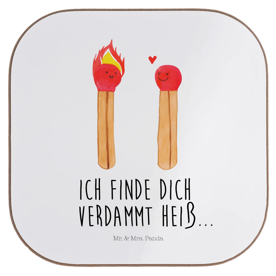 Mr. & Mrs. Panda Untersetzer „Streichhölzer“ – klein, frech und voller Liebe. Unser quadratischer Glasuntersetzer zeigt zwei entzückende Streichhölzer, verbunden durch ein Herz, begleitet vom Spruch: „Ich finde dich verdammt heiß...“ 🔥❤️ Ein perfektes Geschenk für Verliebte, Partner und alle, die gern ein Lächeln auf den Tisch zaubern.