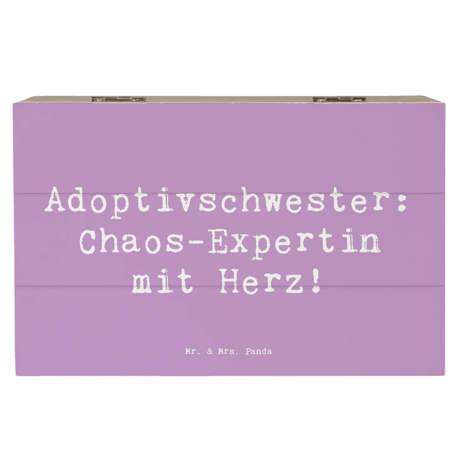 Die wundervolle Holzkiste von Mr. & Mrs. Panda ist das perfekte Geschenk für Deine Adoptivschwester und all die lieben Menschen in Deinem Leben. Mit dem charmanten Spruch "Adoptivschwester: Chaos-Expertin mit Herz!" feierst du die besondere Verbindung und die Liebe, die über Blut hinausgeht.