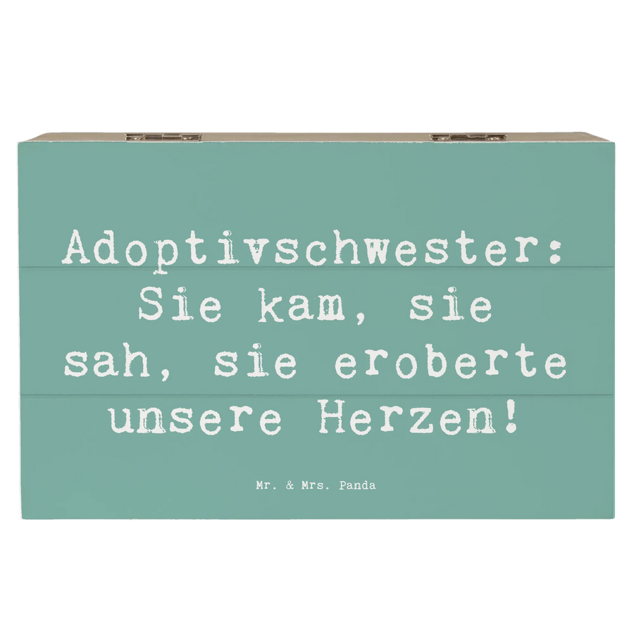 Die wunderschöne Holzkiste von Mr. & Mrs. Panda ist das perfekte Geschenk für Deine Adoptivschwester. Mit dem liebevollen Spruch "Adoptivschwester: Sie kam, sie sah, sie eroberte unsere Herzen!" feierst Du die besondere Verbindung, die über genetische Bindungen hinausgeht.