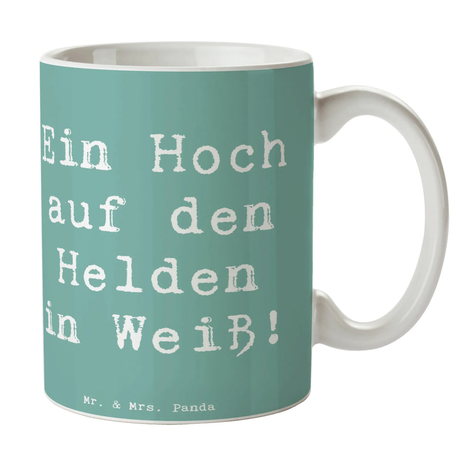 Die wunderschöne Tasse "Ein Hoch auf den Helden in Weiß!" aus der exklusiven 'Danke'-Kollektion von Mr. & Mrs. Panda ist das perfekte Geschenk für jeden Arzt oder jede Ärztin. Diese edle Kaffeetasse aus hochwertiger Keramik ist nicht nur ein praktisches Accessoire für den Büroalltag, sondern auch ein liebevolles Dankeschön für die unermüdliche Arbeit im Gesundheitswesen. Jedes Mal, wenn dein Lieblingsmediziner einen Schluck Kaffee oder Tee aus dieser Tasse genießt, wird er oder sie an deine Wertschätzung erinnert!