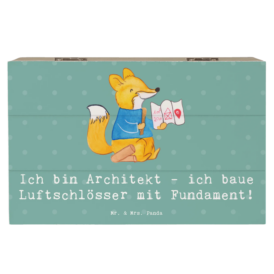 Entdecke die wunderschöne Holzkiste "Ich bin Architekt - ich baue Luftschlösser mit Fundament!" von Mr. & Mrs. Panda! Diese kreative Schatzkiste ist das perfekte Geschenk für alle Architekten und Bau-Enthusiasten.