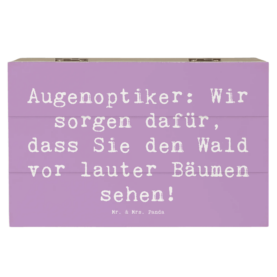 Die wunderschöne Holzkiste von Mr. & Mrs. Panda ist das perfekte Geschenk für Augenoptiker und deren Kunden. Mit dem liebevollen Slogan "Augenoptiker: Wir sorgen dafür, dass Sie den Wald vor lauter Bäumen sehen!" wird diese Kiste zu einem einzigartigen Aufbewahrungsort für all Deine wertvollen Erinnerungen.