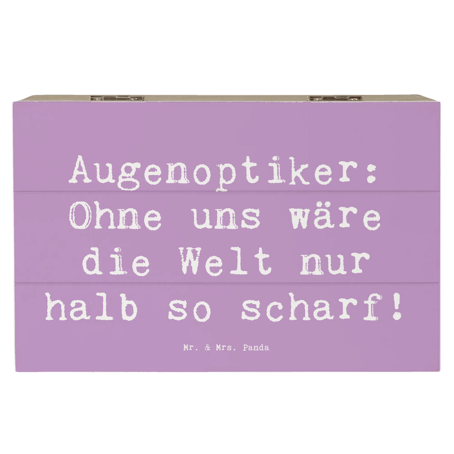 Die Holzkiste 'Augenoptiker' von Mr. & Mrs. Panda ist das perfekte Geschenk für alle, die sich in der Welt der Brillen und des Sehens auskennen! Ob für einen lieben Augenoptiker, eine angehende Auszubildende oder einfach als Dankeschön für einen besonderen Menschen in deinem Leben – diese Kiste wird garantiert ein Lächeln zaubern!