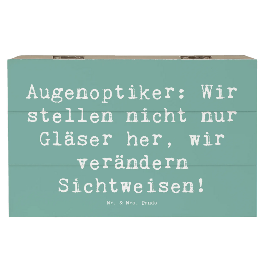 Mit dem herzlichen Spruch 'Augenoptiker: Wir stellen nicht nur Gläser her, wir verändern Sichtweisen!' ist diese Kiste ein echter Hingucker! Diese Erinnerungskiste bietet nicht nur Platz für wertvolle Erinnerungen, sondern ist auch eine stilvolle Dekorationsidee.