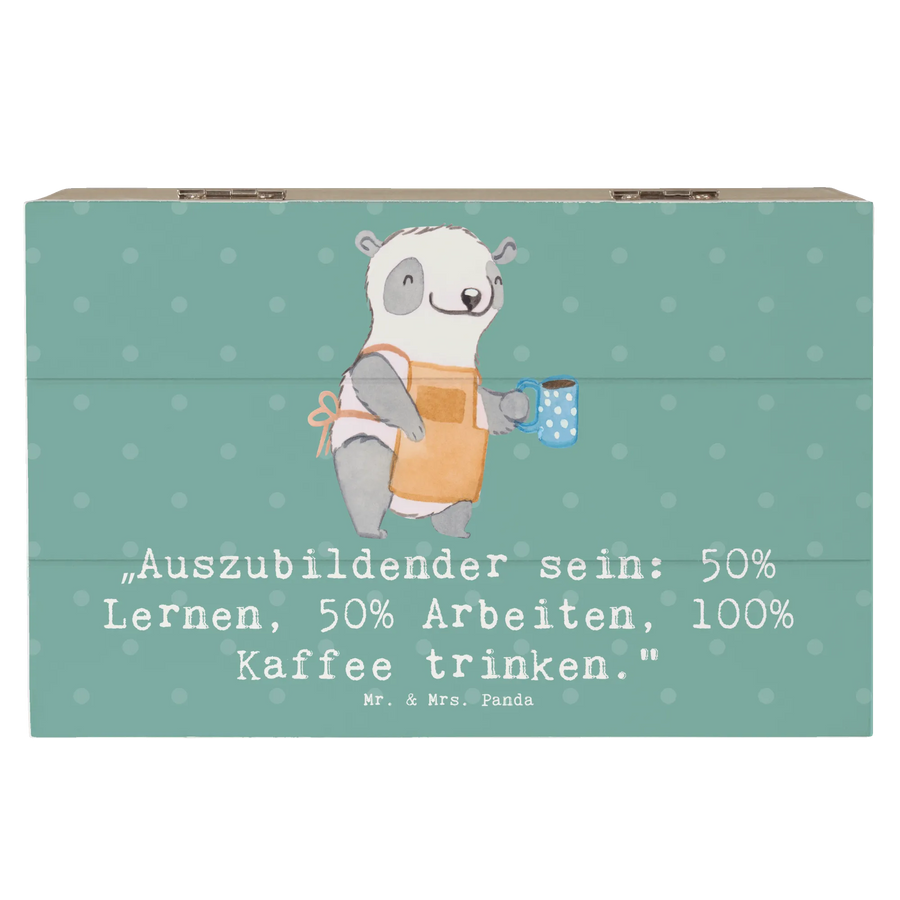 Entdecke die bezaubernde Holzkiste mit dem liebevollen Motiv "Auszubildender sein: 50% Lernen, 50% Arbeiten, 100% Kaffee trinken." von Mr. & Mrs. Panda! Diese hochwertige Kiste ist aus robuster Holzfaser gefertigt und bietet den perfekten Aufbewahrungsort für all deine Erinnerungen, Schätze und wertvollen Gegenstände.