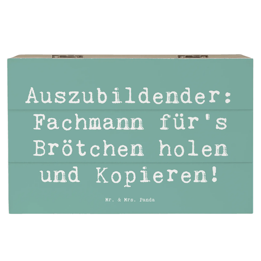 Die wunderschöne Holzkiste "Auszubildender" von Mr. & Mrs. Panda ist das perfekte Geschenk für alle angehenden Fachkräfte und ihren Ausbildungsstart! Mit einem charmanten Motiv und dem Spruch "Auszubildender: Fachmann für's Brötchen holen und Kopieren!" begeistert sie sowohl Auszubildende als auch deren Ausbilder und Freunde.