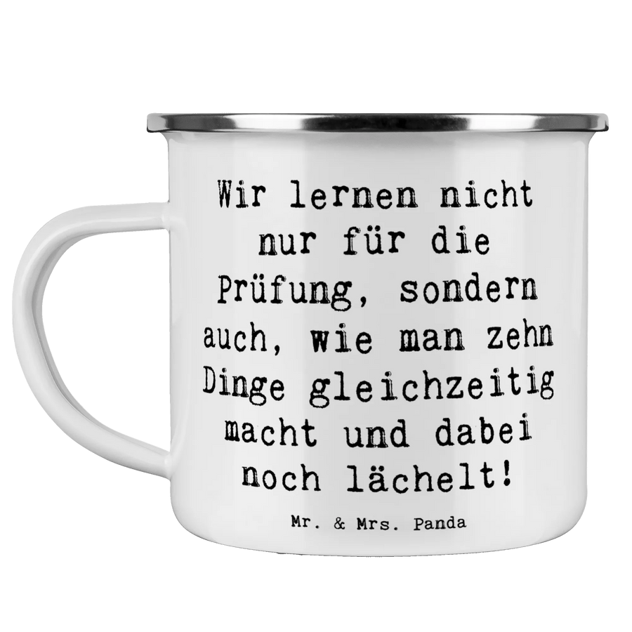 Die Camping Emaille Tasse ‚Auszubildende‘ von Mr. & Mrs. Panda ist das perfekte Geschenk für all jene, die in einer Ausbildung stecken oder gerade erst ins Berufsleben starten! Diese liebevoll gestaltete Tasse, die mit dem Spruch ‚Wir lernen nicht nur für die Prüfung, sondern auch, wie man zehn Dinge gleichzeitig macht und dabei noch lächelt!‘ bedruckt ist, wird zum treuen Begleiter bei all deinen Outdoor-Abenteuern.