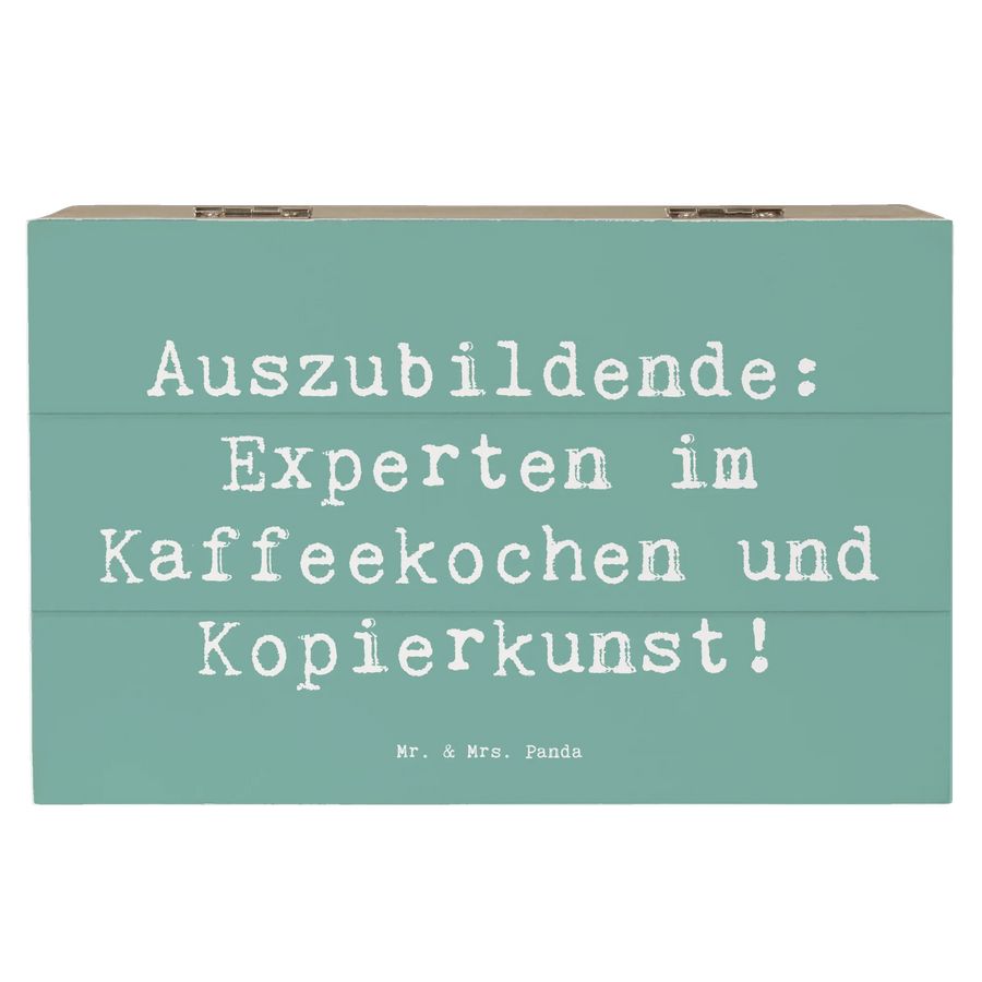 Die wunderschöne Holzkiste von Mr. & Mrs. Panda ist das perfekte Geschenk für alle Auszubildenden! Diese besondere Kiste, bedruckt mit dem charmanten Spruch "Auszubildende: Experten im Kaffeekochen und Kopierkunst!", ist ideal geeignet, um Erinnerungen und wertvolle Schätze aufzubewahren.