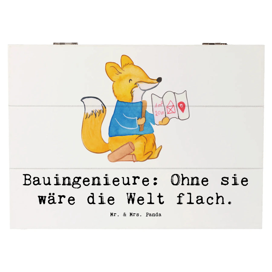Die wunderschöne Holzkiste von Mr. & Mrs. Panda ist nicht nur ein praktischer Aufbewahrungsort, sondern auch eine liebevolle Erinnerungskiste im angesagten Bauingenieur-Design! Mit dem Slogan "Bauingenieure: Ohne sie wäre die Welt flach." wird dieses Schmuckstück garantiert zum Blickfang in jedem Zuhause.