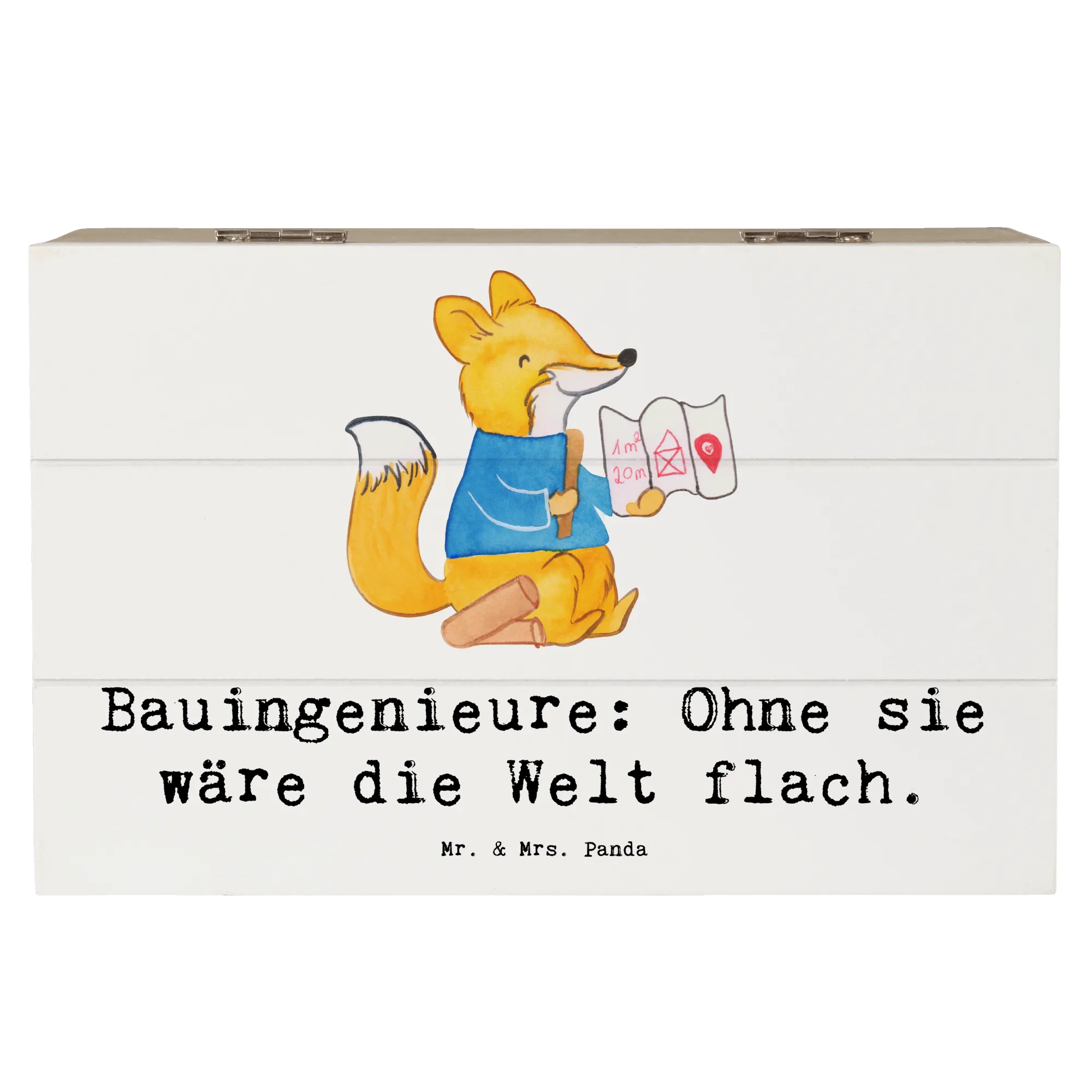 Entdecke die liebevoll gestaltete Holzkiste von Mr. & Mrs. Panda, die speziell für Bauingenieure entworfen wurde! Diese wunderbare Kiste ist nicht nur ein Blickfang, sondern auch der perfekte Aufbewahrungsort für all Deine wertvollen Erinnerungen.