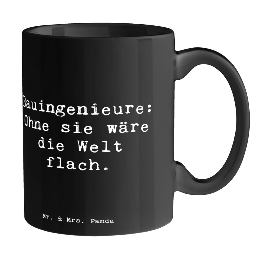 Tasse Spruch Bauingenieure: Ohne sie wäre die Welt flach. - Schwarz