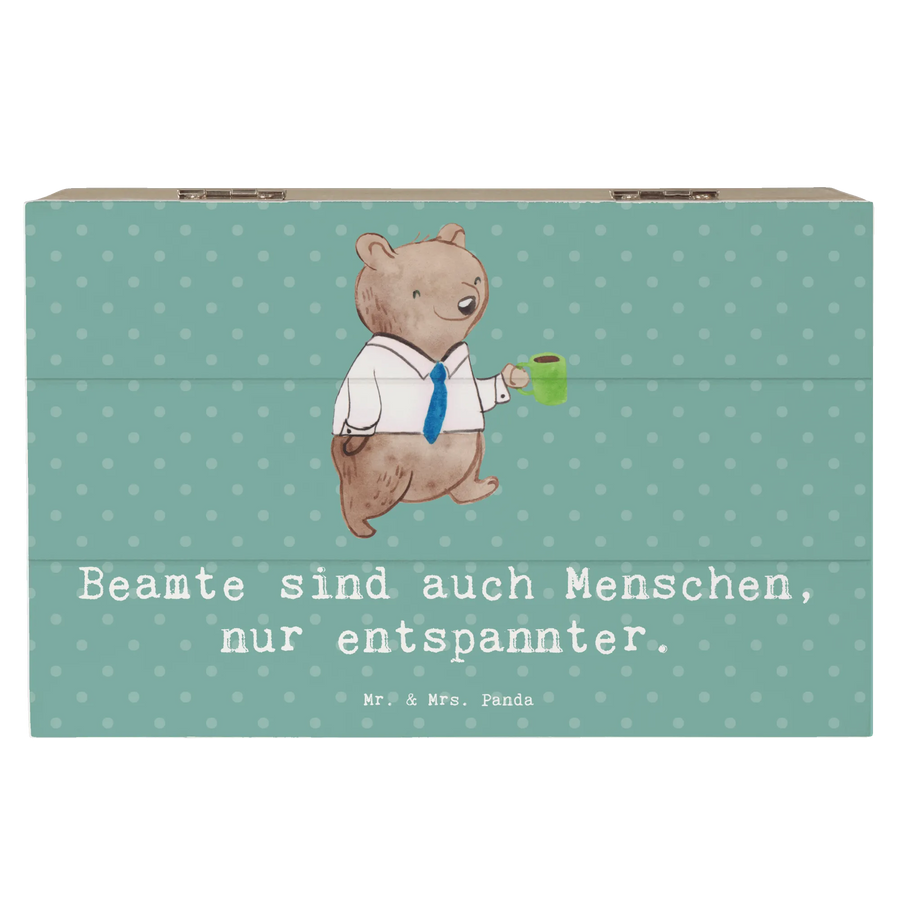 Die wunderschöne Holzkiste von Mr. & Mrs. Panda ist das ideale Geschenk für alle Beamtinnen! Mit dem liebevoll handgezeichneten Motiv und dem witzigen Spruch "Beamte sind auch Menschen, nur entspannter" wird diese Kiste zum perfekten Aufbewahrungsort für die vielen Schätze des Alltags.