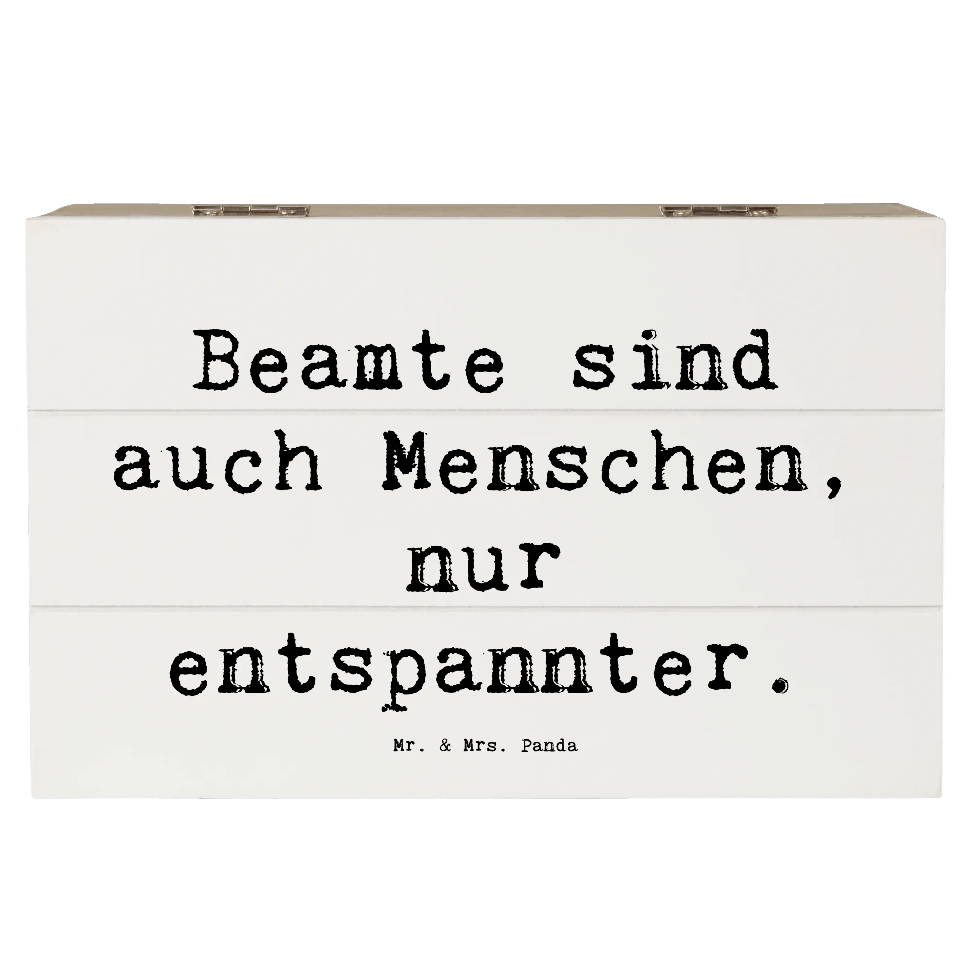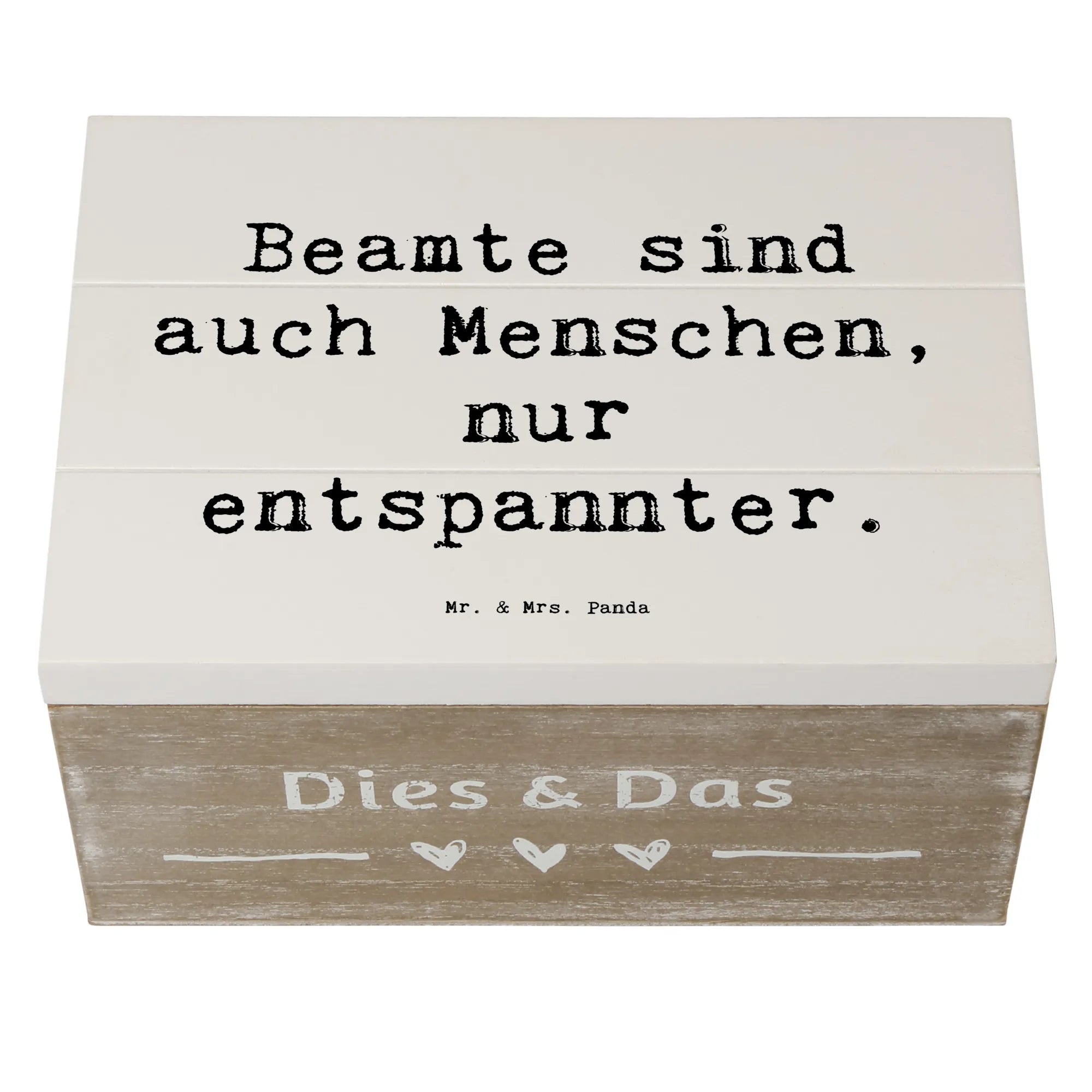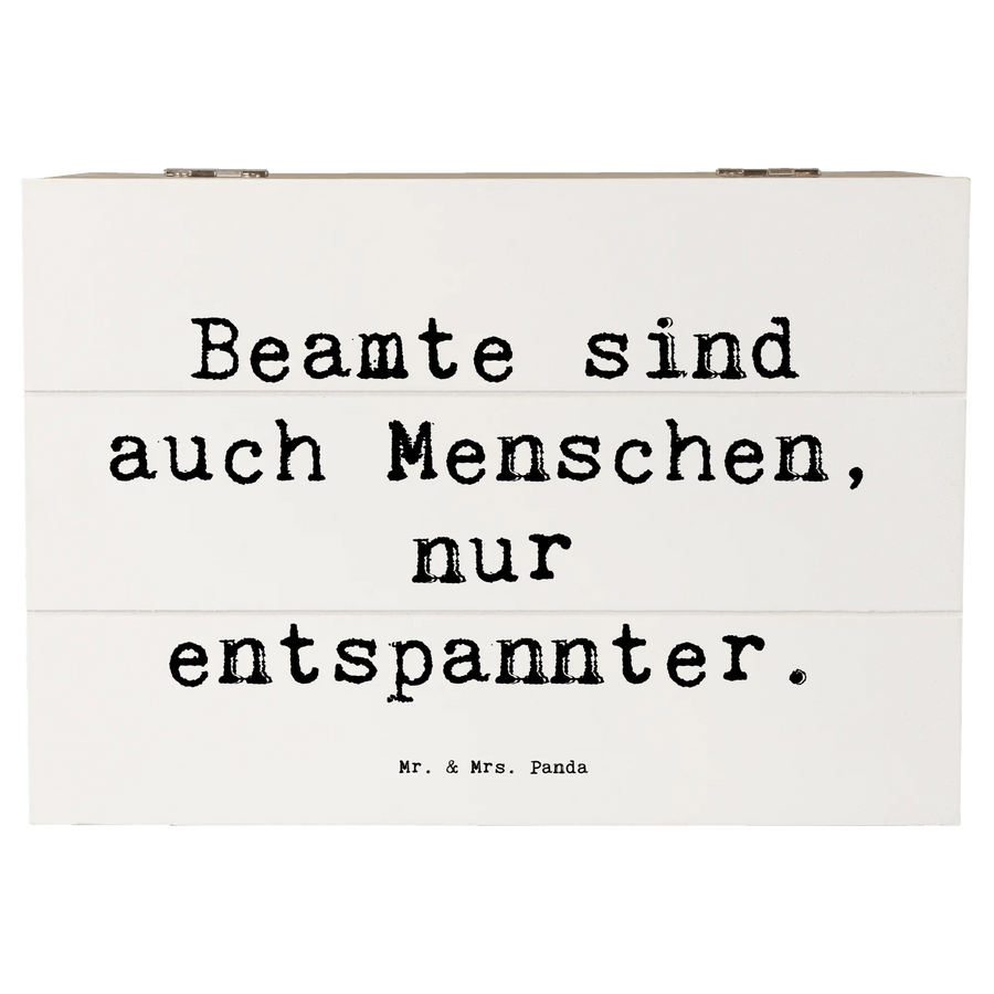 Die liebevoll gestaltete Kiste wird mit dem Spruch 'Beamte sind auch Menschen, nur entspannter.' bedruckt. Dieser Spruch zaubert ein Lächeln ins Gesicht und bringt eine Prise Humor in den Alltag.