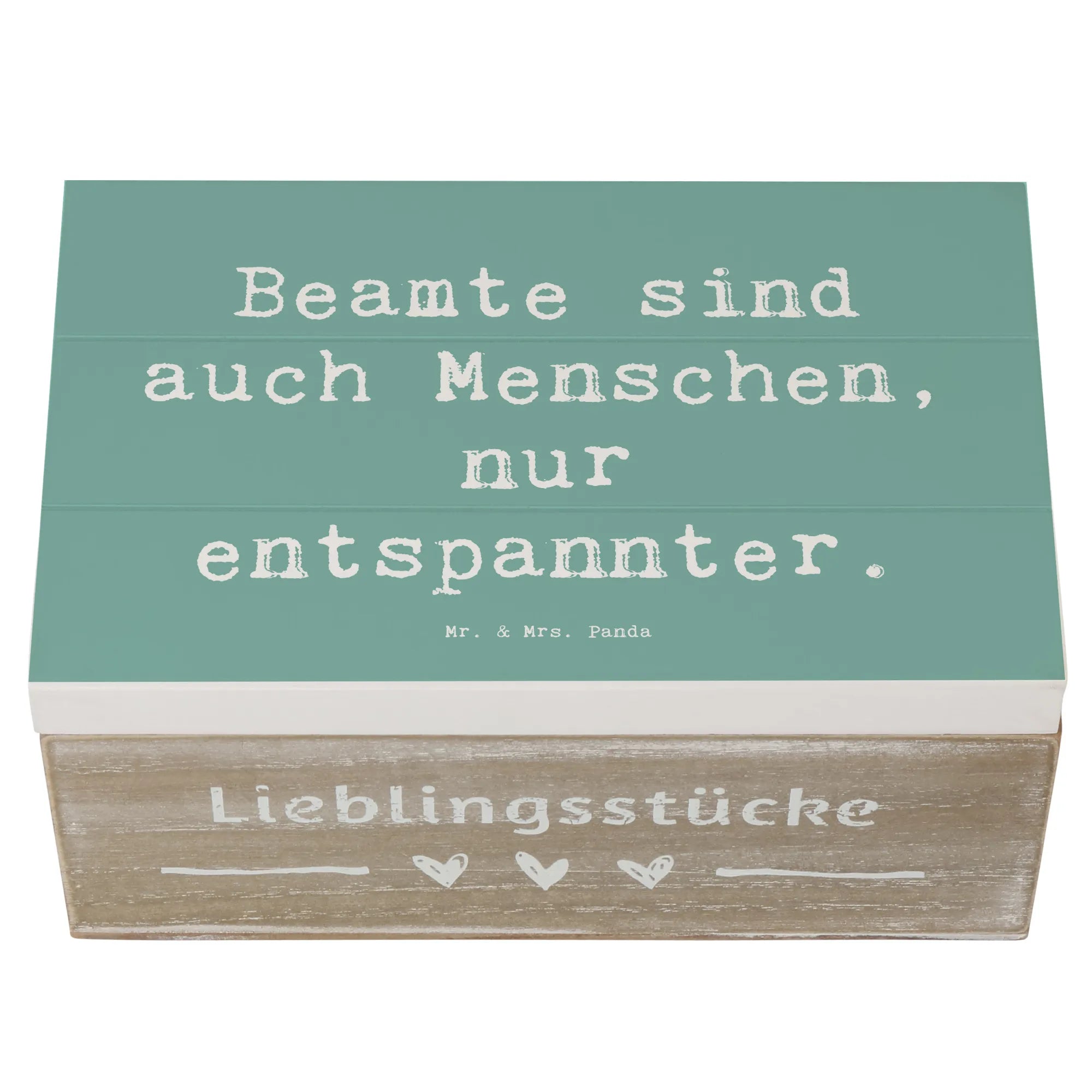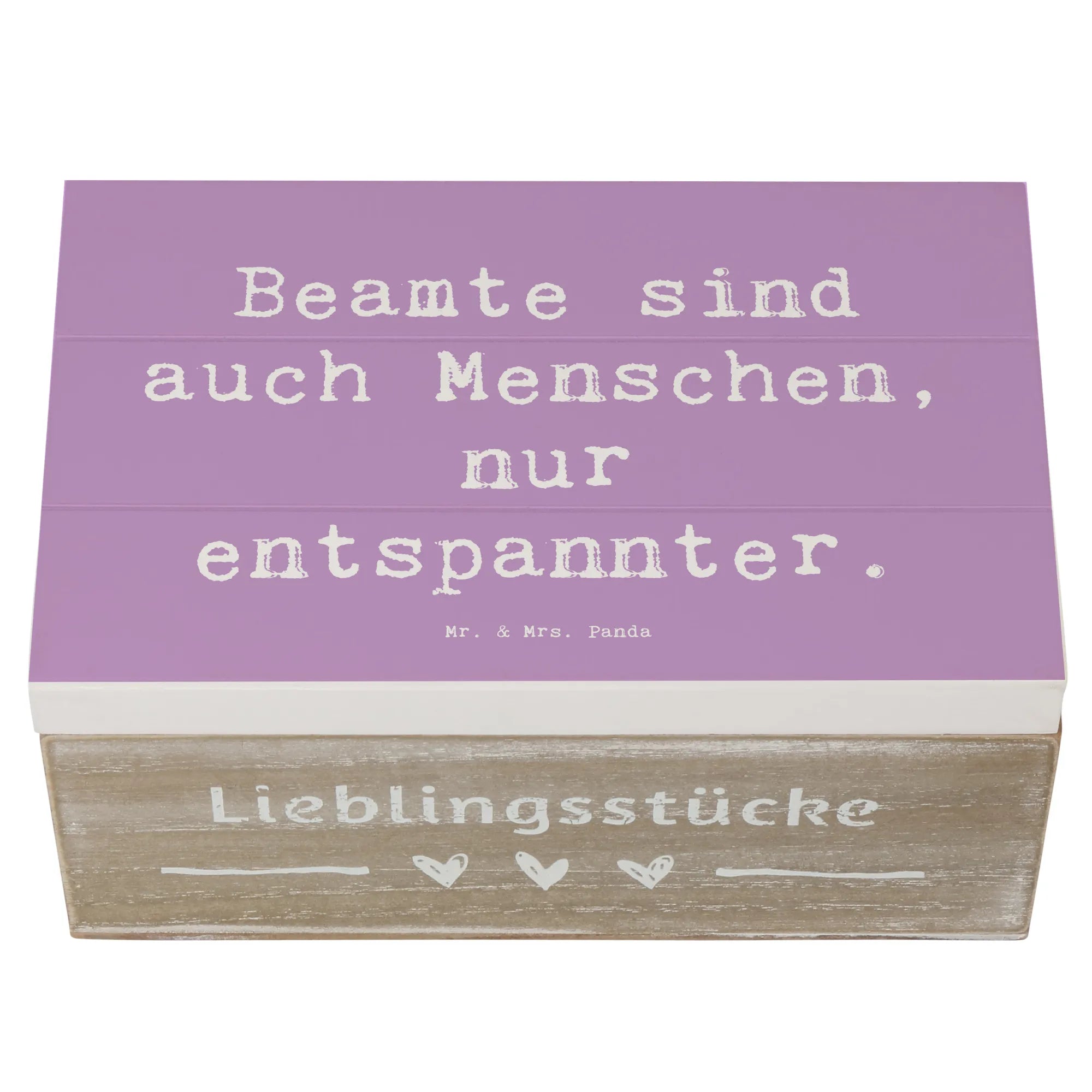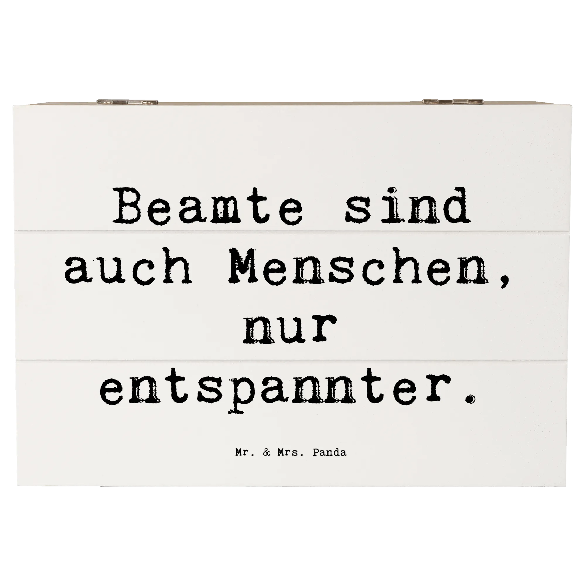 Die liebevoll gestaltete Kiste wird mit dem Spruch 'Beamte sind auch Menschen, nur entspannter.' bedruckt. Dieser Spruch zaubert ein Lächeln ins Gesicht und bringt eine Prise Humor in den Alltag.