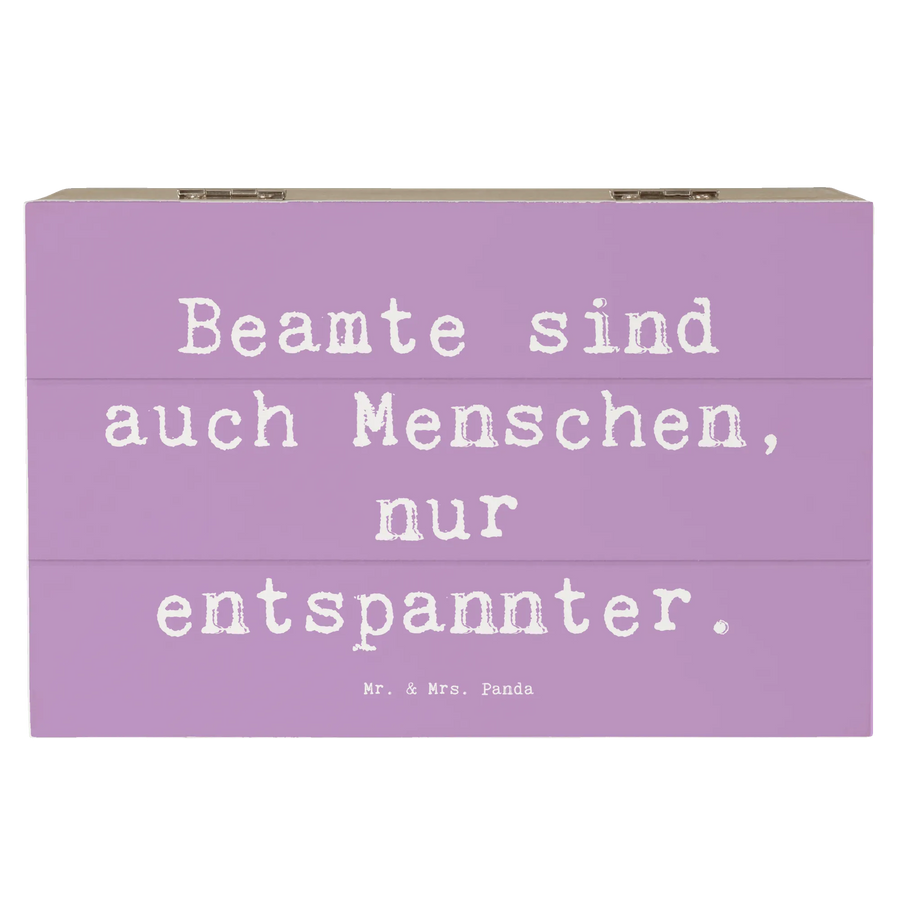 Die liebevoll gestaltete Kiste wird mit dem Spruch 'Beamte sind auch Menschen, nur entspannter.' bedruckt. Dieser Spruch zaubert ein Lächeln ins Gesicht und bringt eine Prise Humor in den Alltag.