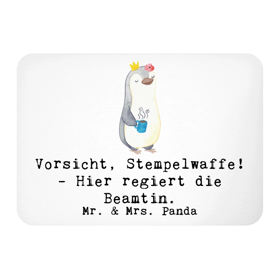 Der Kühlschrankmagnet "Vorsicht, Stempelwaffe! - Hier regiert die Beamtin." aus der Kollektion Berufe von Mr. & Mrs. Panda ist das perfekte Geschenk für alle, die die Kunst des Beamten-Daseins mit Humor und Stil zelebrieren! Ob für die geschätzte Kollegin, die gerade ihren Beamtenstatus feiert, oder für die beste Freundin, die mit ihrer neuen Beamtinnen-Rolle zurechtkommen muss – dieser Magnet bringt Freude und einen Hauch von Persönlichkeit in jeden Küchenbereich oder an jede Pinnwand.