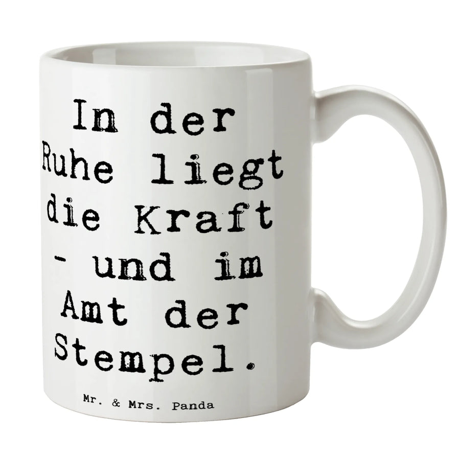 Mit einem zarten Hintergrund in Lavendeltraum und dem Spruch 'In der Ruhe liegt die Kraft - und im Amt der Stempel.' bringt sie eine Portion gute Laune in jeden Büro-Alltag. Egal, ob als Kaffeetasse oder Teetasse, sie lässt sich perfekt für Deine Lieblingsgetränke nutzen. Die Tasse fasst bis zu 325 ml und ist zudem mikrowellen- und spülmaschinenfest, sodass sie praktisch und einfach im Alltag zu handhaben ist.