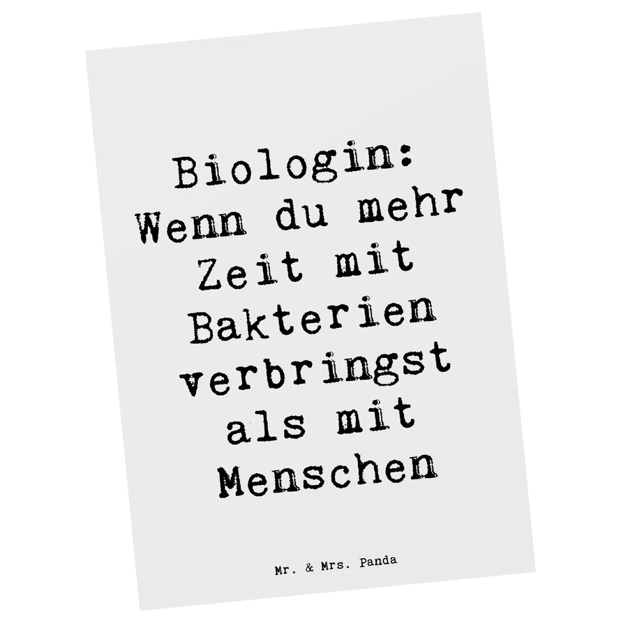 Die perfekte Postkarte für alle Biologinnen und Biologen! Diese tolle Karte aus der Kollektion "Berufe" von Mr. & Mrs. Panda bringt Humor und ein tolles Design zusammen. Ob als Geburtstagskarte, Einladung oder einfach als Dankeskarte für eine Kollegin oder einen Kollegen – mit dem spritzigen Spruch "Biologin: Wenn du mehr Zeit mit Bakterien verbringst als mit Menschen" sorgst du für Schmunzeln und Freude!