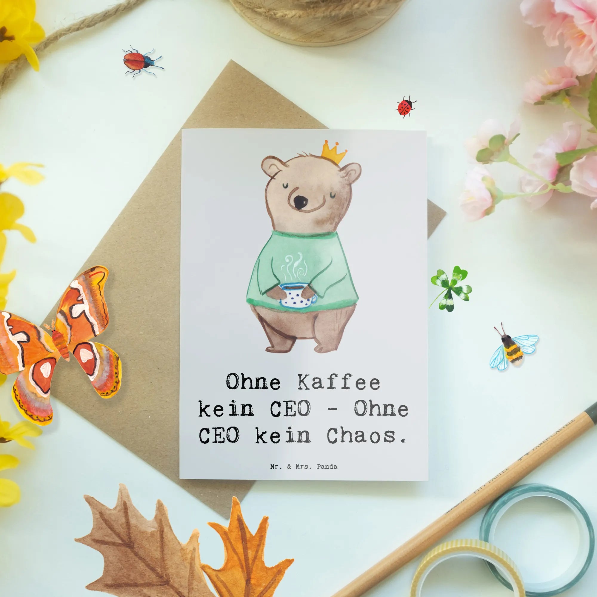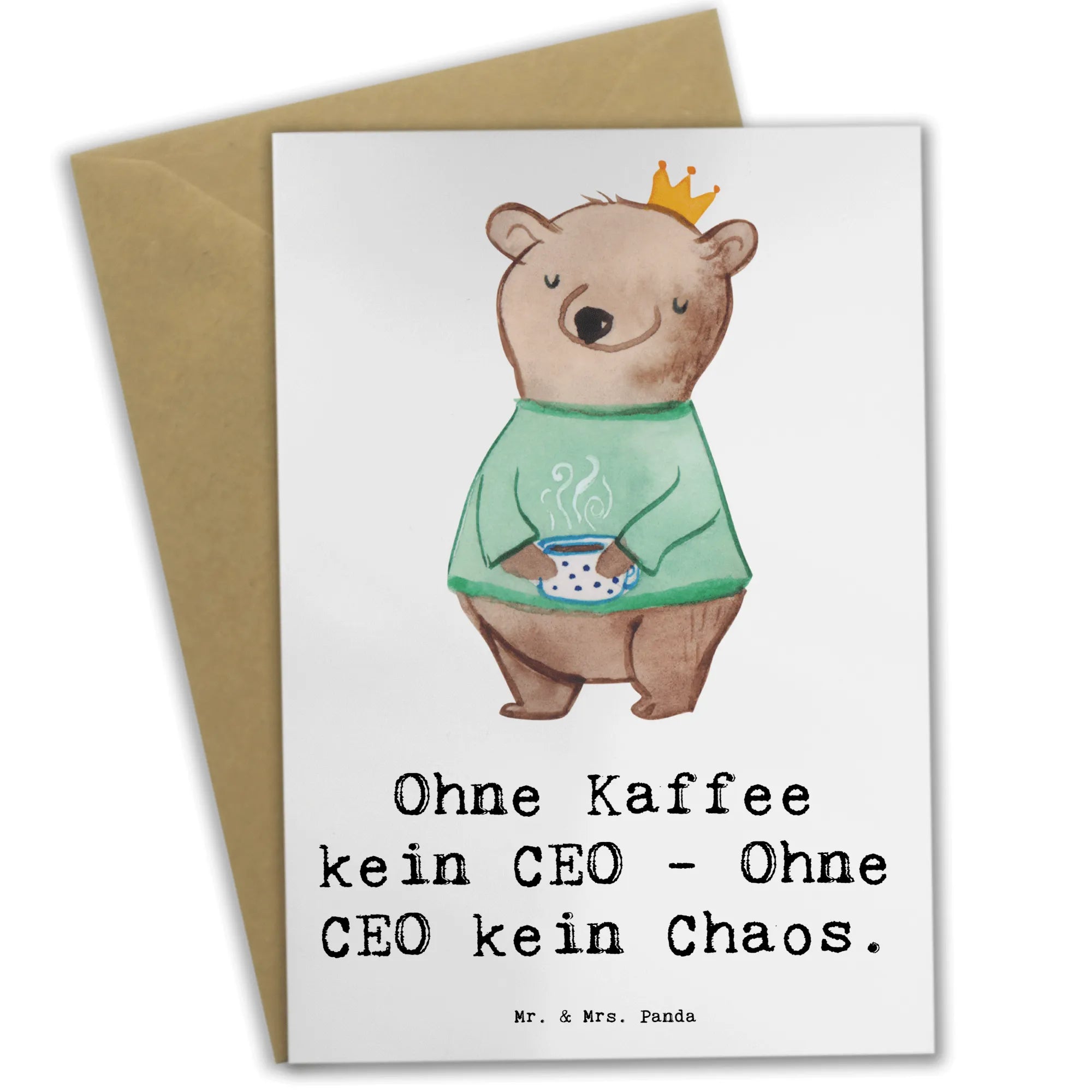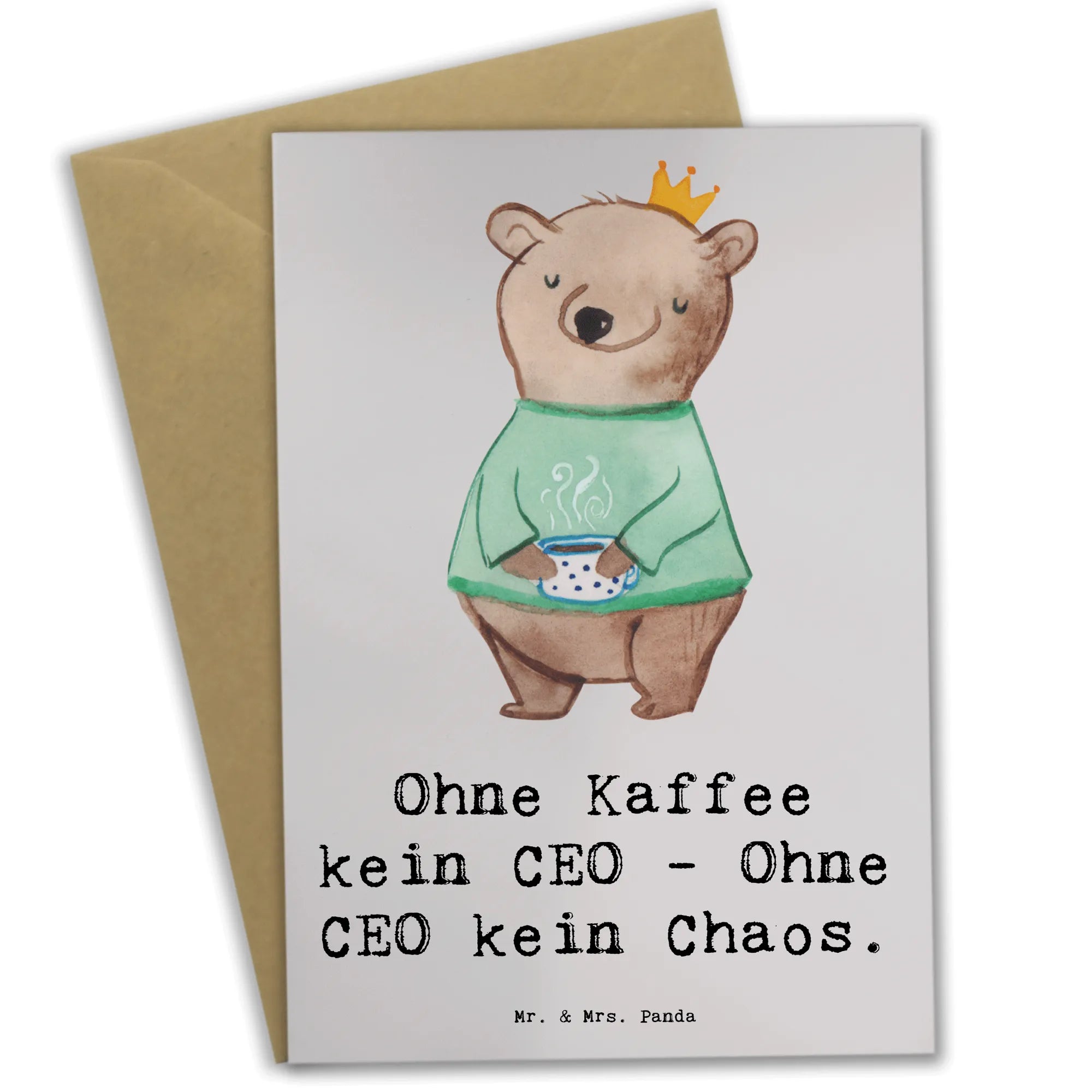 Die liebevoll gestaltete Grußkarte aus der Berufe Kollektion von Mr. & Mrs. Panda ist ein wahres Must-Have für jeden CEO oder für alle, die in der Unternehmensführung tätig sind. Mit dem witzigen Slogan 'Ohne Kaffee kein CEO - Ohne CEO kein Chaos!' setzt diese Karte nicht nur ein Statement, sondern bringt auch ein Lächeln in den Alltag.