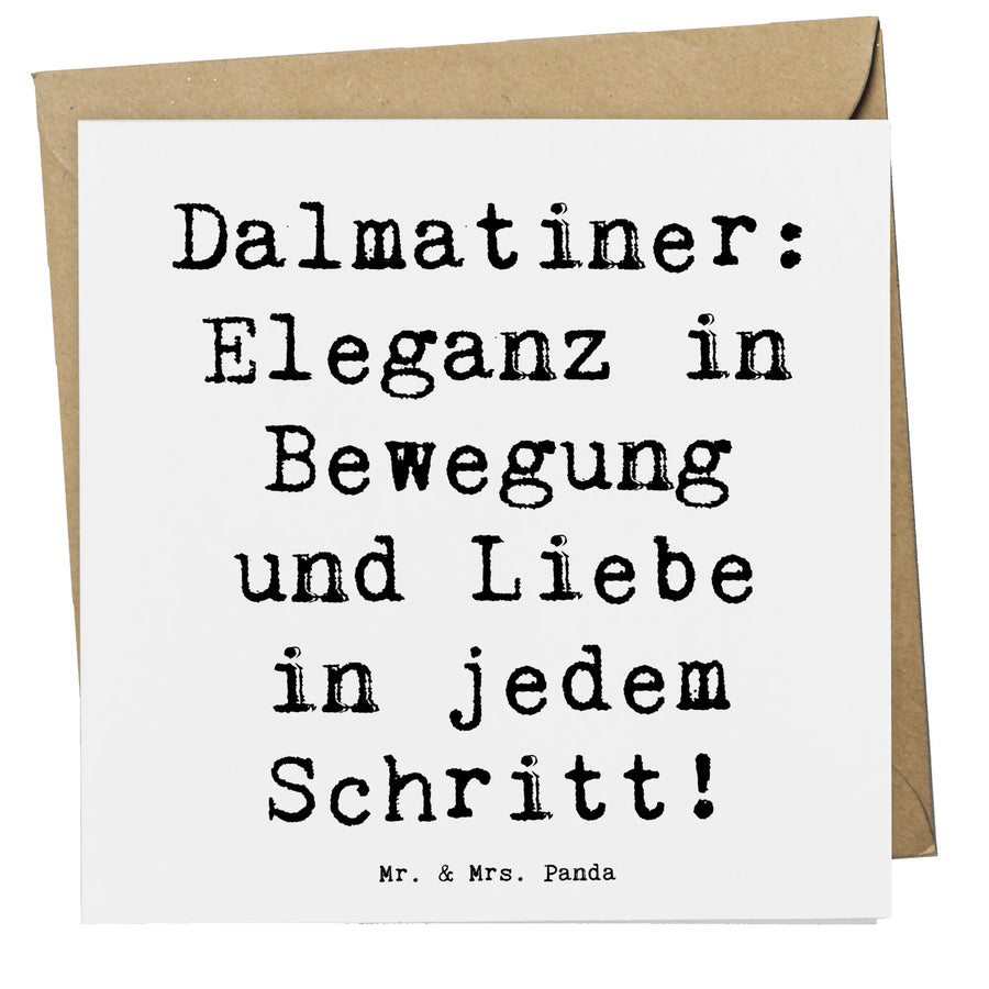 Wenn Du nach einem besonderen Geschenk für einen Hundefan suchst, dann ist die Deluxe Karte Dalmatiner von Mr. & Mrs. Panda die perfekte Wahl! Diese wunderschöne und hochwertige Klappkarte aus 300 Gramm Karton ist mit dem zauberhaften Spruch „Dalmatiner: Eleganz in Bewegung und Liebe in jedem Schritt!“ versehen.
