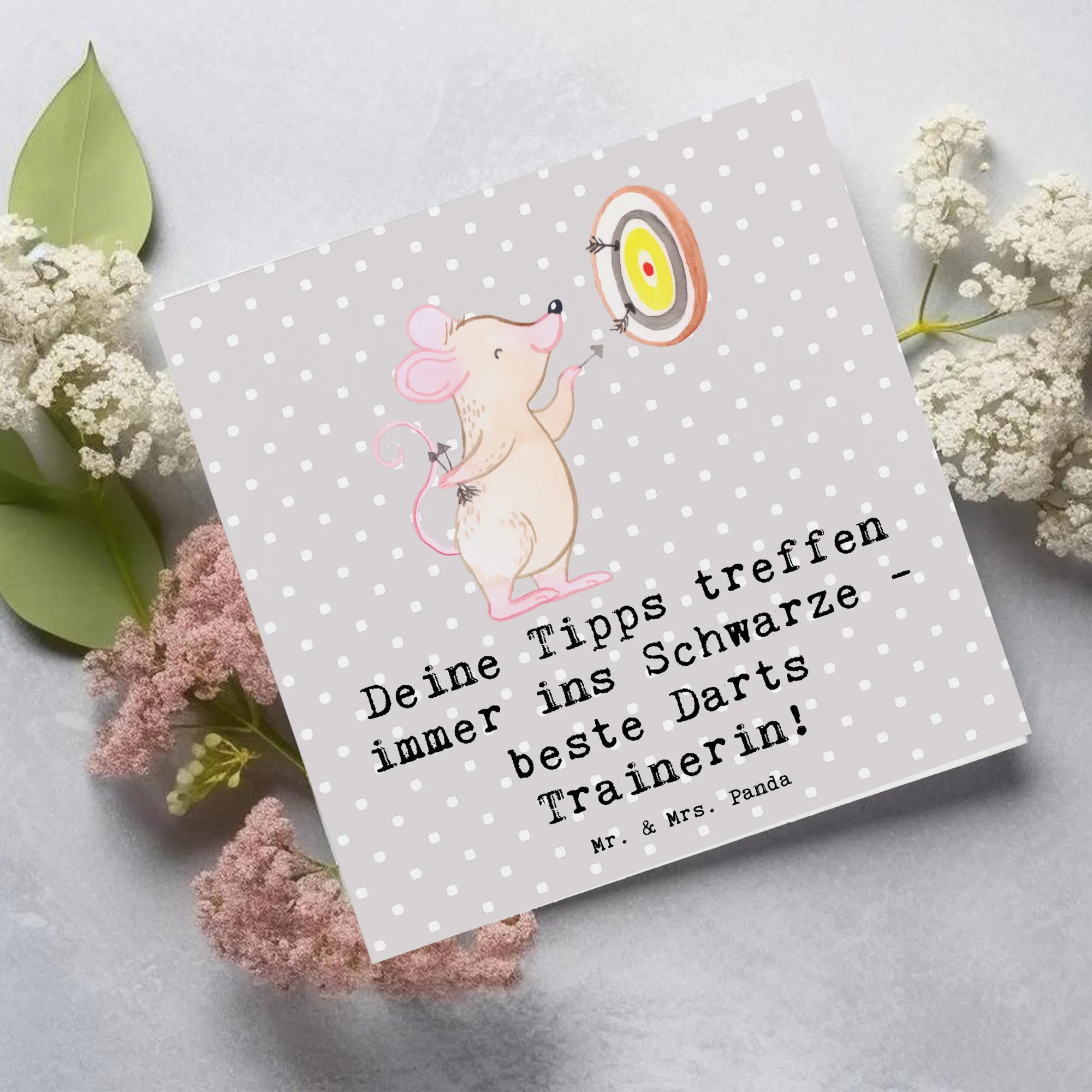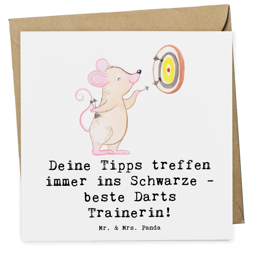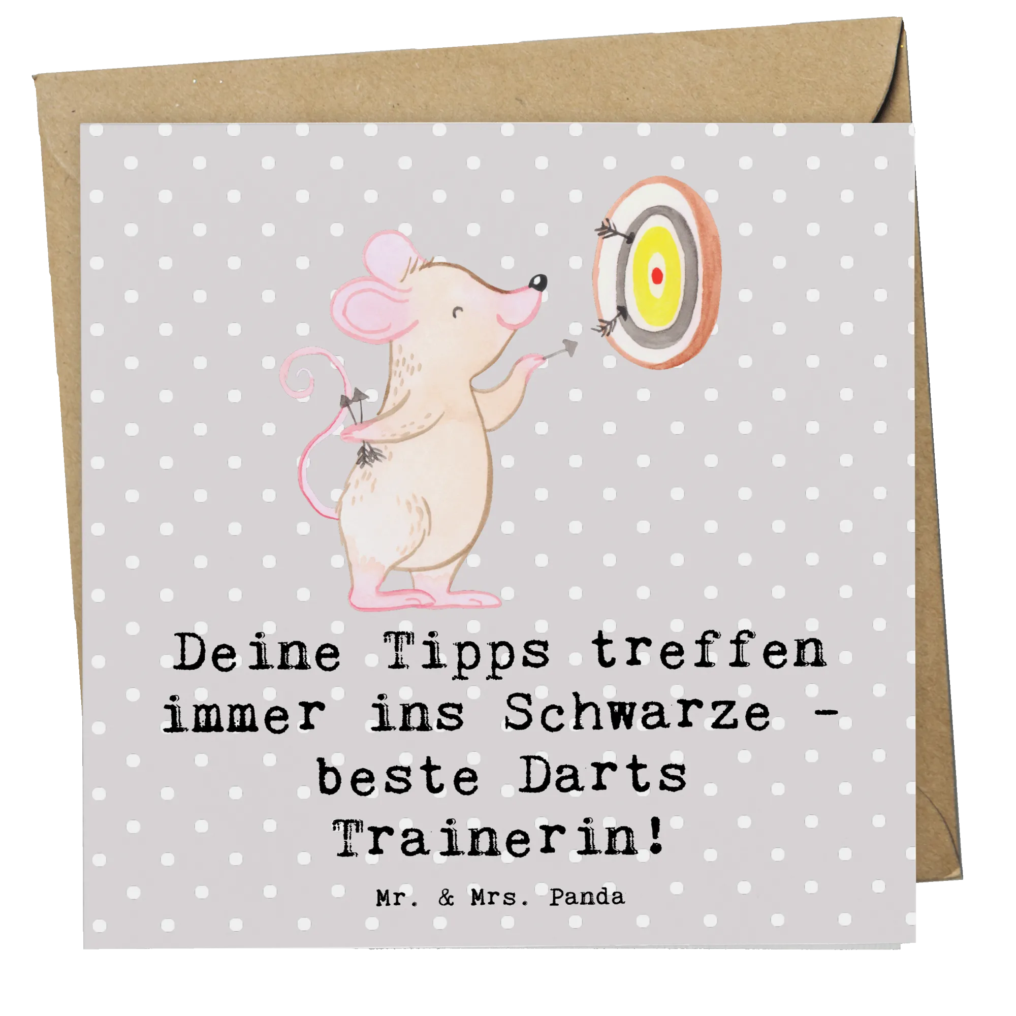 Die Deluxe Karte 'Darts Trainerin' von Mr. & Mrs. Panda ist das perfekte Geschenk für jede Trainerin, die Leidenschaft für Darts und Sport hat. Diese hochwertige quadratische Karte misst 140 mm x 140 mm und wird aus edlem 300 Gramm Karton gefertigt.