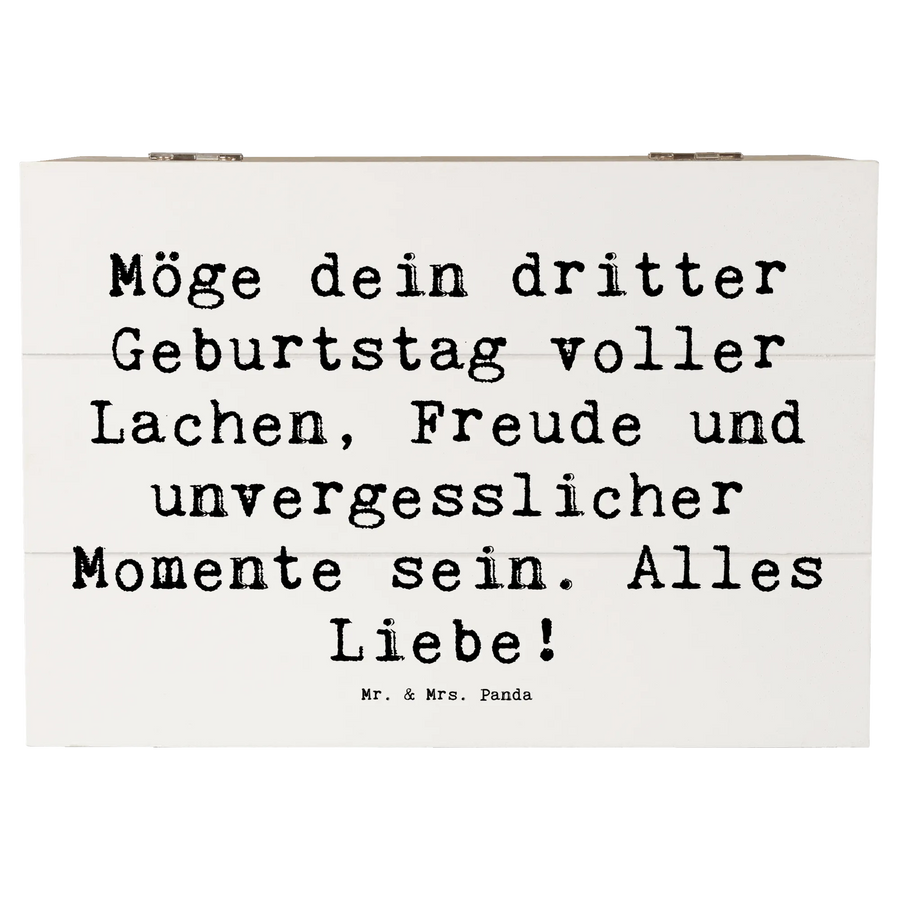 Die wunderschöne Holzkiste von Mr. & Mrs. Panda ist das perfekte Geschenk für den dritten Geburtstag eines kleinen Lieblings. Diese Erinnerungsbox ist nicht nur ein toller Aufbewahrungsort für allerlei Schätze, sondern auch eine großartige Möglichkeit, um besondere Momente festzuhalten. Mit dem liebevollen Spruch "Möge dein dritter Geburtstag voller Lachen, Freude und unvergesslicher Momente sein. Alles Liebe!" wird diese Kiste zu einem unvergesslichen Erbstück, das die Erinnerungen an die frühe Kindheit bewahrt.